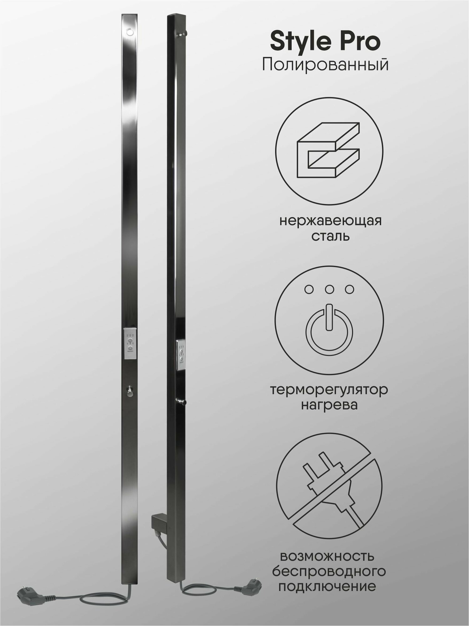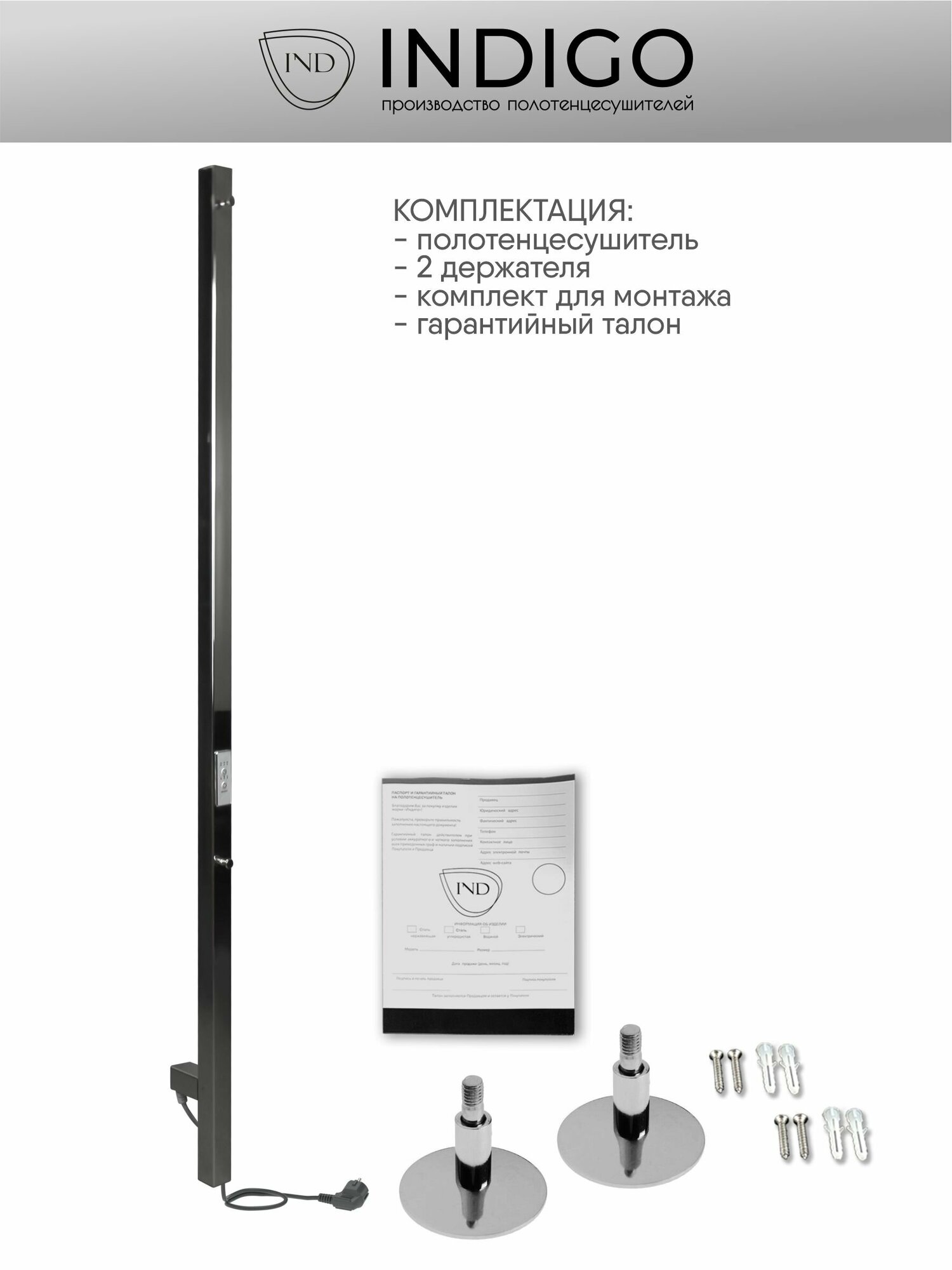 Полотенцесушитель электрический INDIGO Style PRO в размере 1200х30 (ВхШ) выбирают за его технологичность и универсальность. Модель имеет терморегулятор нагрева, у которого три режима: 40, 45, 50 градусов и таймер на отключение через 2, 4, 6 часов. Универсальность изделия предусматривает подключение через прямой провод или скрытое подключение без покупки дополнительного переходника. Длина прямого провода 1,2 метра. Полотенцесушитель относится к энергоэффективным изделиям, потребляемая мощность в данном размере 65 Вт. Специальная технология нагревательного кабеля защищает полотенцесушитель от перегрева что влияет на длительные сроки службы. В комплектации идут 2 телескопических держателя, комплект монтажа и гарантийный паспорт. Полотенцесушитель INDIGO Style PRO застрахован и имеет гарантию 3 года. Выбирая INDIGO вы получаете надежный продукт из нержавеющей стали с гарантией качества от Российского производителя