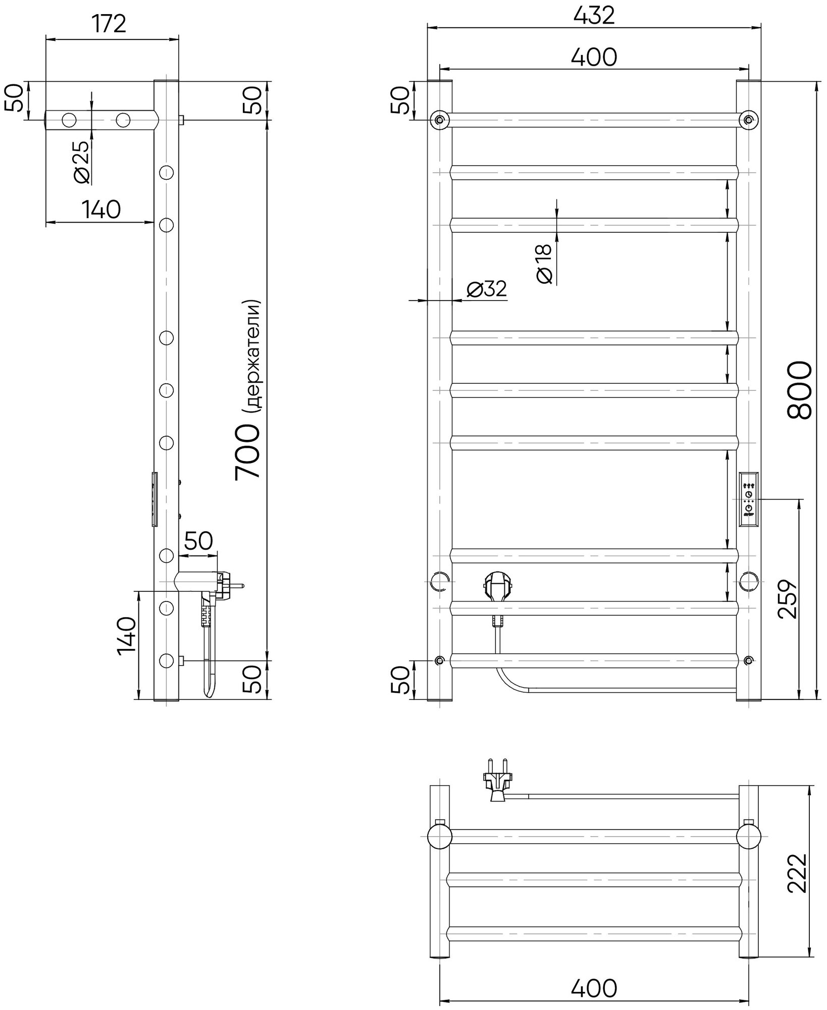 | ВКоробке | Полотенцесушитель - 1 шт. Терморегулятор - 1 шт. Комплект креплений - 1 шт. Электрический кабель - 1 шт. Инструкция - 1 шт. |