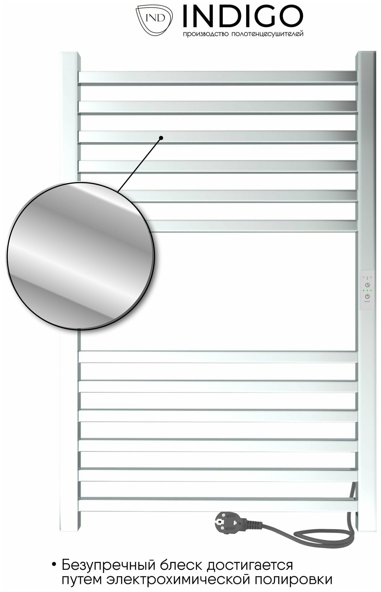 Полотенцесушитель электрический INDIGO Attic в размере 800х500 (ВхШ) выбирают за его технологичность и универсальность. Модель имеет терморегулятор нагрева, у которого три режима: 40, 45, 50 градусов и таймер на отключение через 2, 4, 6 часов. Универсальность изделия предусматривает подключение через провод, который переставляется на нужную вам сторону или скрытое подключение без покупки дополнительного переходника. Длина прямого провода 1,2 метра. Полотенцесушитель относится к энергоэффективным изделиям, потребляемая мощность в данном размере 90 Вт. Специальная технология нагревательного кабеля защищает полотенцесушитель от перегрева что влияет на длительные сроки службы. В комплектации идут 4 телескопических держателя, комплект монтажа и гарантийный паспорт. Полотенцесушитель INDIGO Attic застрахован и имеет гарантию 3 года. Выбирая INDIGO вы получаете надежный продукт из нержавеющей стали с гарантией качества от Российского производителя