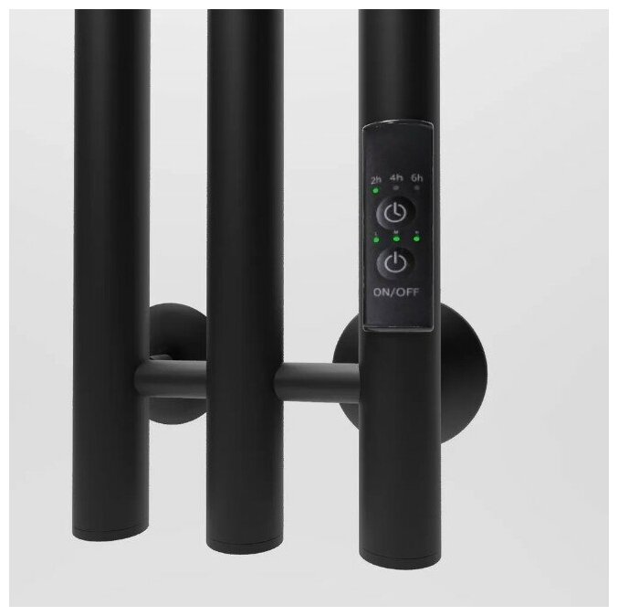Внимание! 3 крючка. Встроенная функция регулировки температуры: 40 / 50 / 60 градусов Экономичность: Полотенцесушитель снабжен панелью управления. Кнопка включения/выключения и таймер на 2 / 4 / 6 часов , который позволяет включать изделие на ограниченное время. Эта функция дает возможность экономить электричество. Удобство монтажа: Полотенцесушитель крепится к стене на четыре держателя. Скрытое подключение: Благодаря приваренным в нижней части вертикальных труб в которых соединяется электропроводка, возможно скрытое подключение к электричеству справа. Подключение в розетку: В комплекте также имеется шнур с вилкой, который будет необходим при подключении к розетке. Панель включения: РЕЖИМ №1 — работа в течение 2 часов с последующим отключением. РЕЖИМ №2 — работа в течение 4 часов с последующим отключением. РЕЖИМ №3 — работа в течение 6 часов с последующим отключением. Комплектация: Телескопическое крепление без кольца - 3 шт;Комплект скрытого монтажа - 1 шт;кабель с вилкой 220В - 1 шт