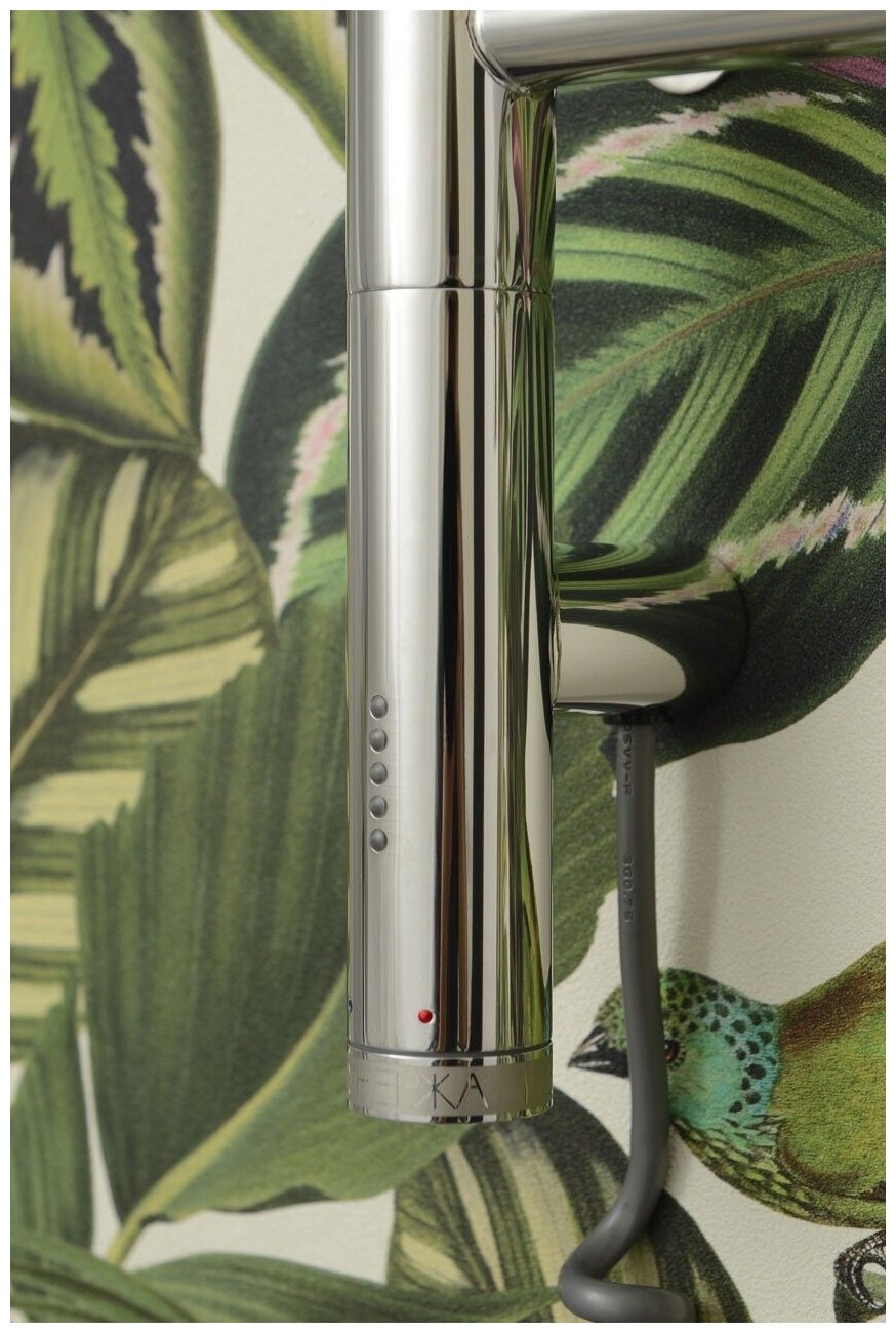 Богема 3.0 - электрический полотенцесушитель из нержавеющей стали, оснащённый многофункциональным блоком управления МЭМ Сунержа. Преимущество жидкостных моделей в том, что они обладают повышенной мощностью (до 300 Вт) и могут служить не только для сушки вещей, но и как полноценный прибор для обогрева большого помещения. МЭМ в этих моделях сконструирован так, что при достижении заданной температуры он отключается и по мере остывания включается и нагревается вновь. Благодаря такому режиму работы модуль помогает беречь электроэнергию. Режимы работы МЭМ - Поверните элемент управления, чтобы модуль начал работу - Каждый следующий поворот задаёт комфортную для вас температуру - Красные светодиоды не мигают и загораются по очереди в зависимости от заданного уровня температуры. - Если продолжить крутить поворотный элемент модуля, то модуль переходит в режим таймера. В этом случае температура остаётся неизменной на уровне 60 °C. - Каждый поворот задаёт время, в течение которого прибор будет беспрерывно работать, вплоть до пяти часов включительно. - Мигающие красные светодиоды оповестят вас о количестве часов, которое осталось до автоматического выключения прибора.