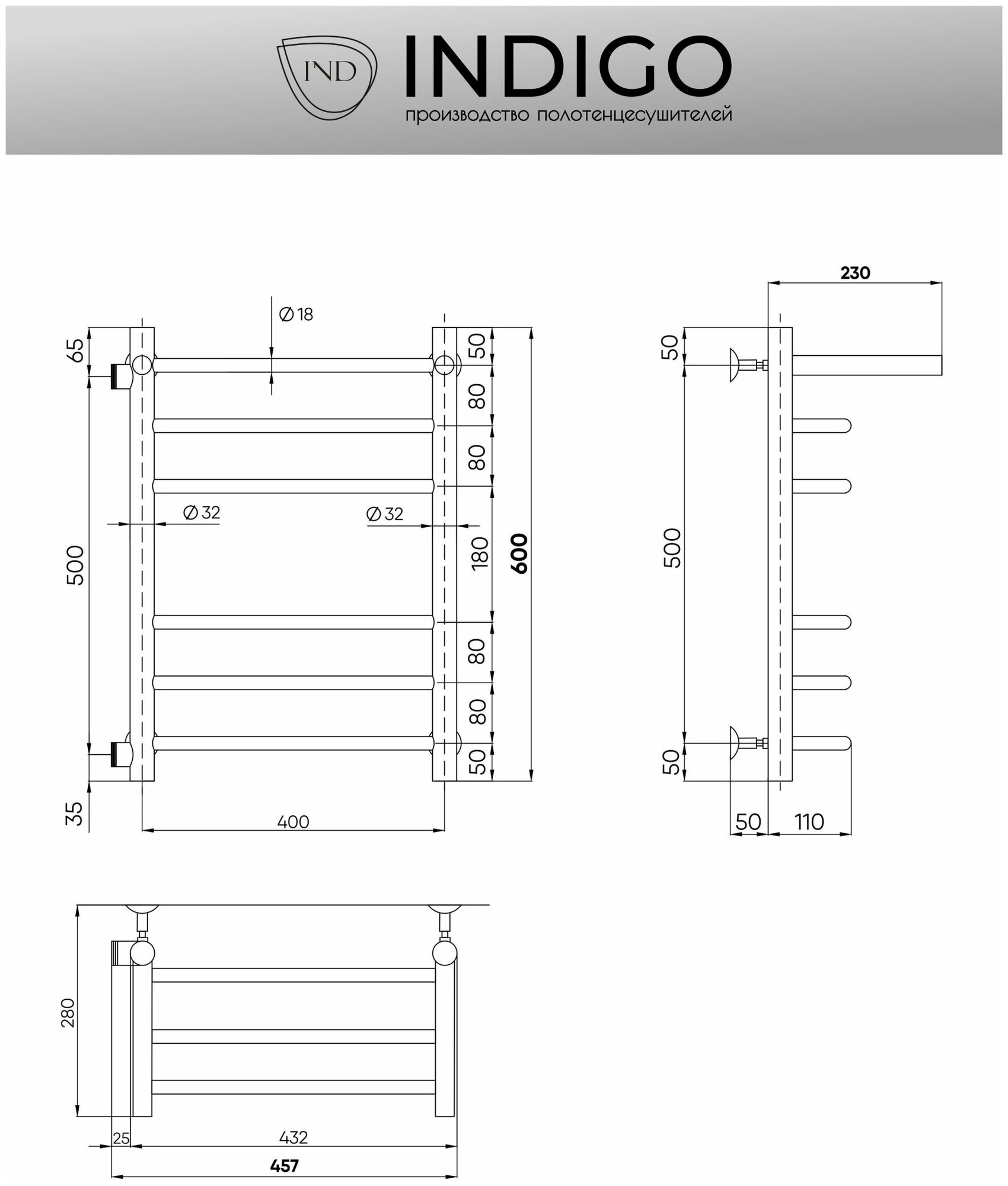 Полотенцесушитель водяной INDIGO Brace с полкой с боковым подключением в размере 600х400 (ВхШ) выбирают за его скобообразные перекладины и функциональность. Модель изготовлена из высококачественной нержавеющей стали. Качественная металлообработка в местах подключений обеспечивает плотное прилегание прокладки. Изделие окрашено порошковой краской по специальной технологии. В комплектацию входит изделие, гарантийный талон, держатели 4 шт. Для монтажа необходимо отдельно приобрести нужные вам фитинги. Полотенцесушитель INDIGO Brace застрахован и имеет гарантию 5 лет.Выбирая INDIGO, вы получаете надежный продукт из нержавеющей стали с гарантией качества от Российского производителя.