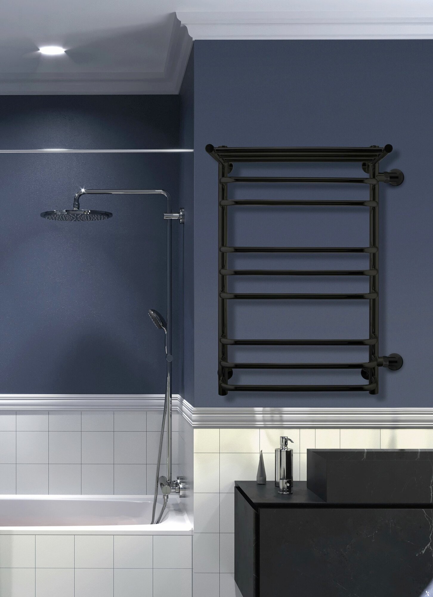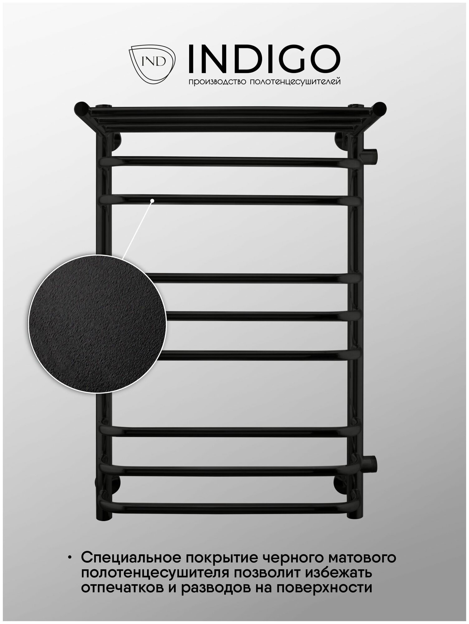Полотенцесушитель водяной Indigo Brace боковое подключение с полкой черный муар LBCW80-50PBRR-б/п-60 (размер: 56X80 см)