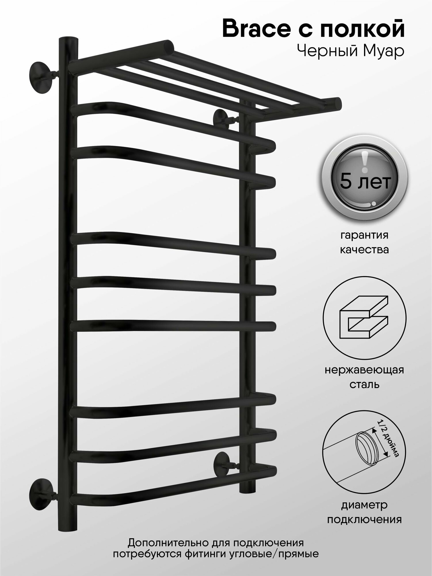 Полотенцесушитель водяной Indigo Brace черный муар LBCW80-50PBR (размер: 53X80 см)