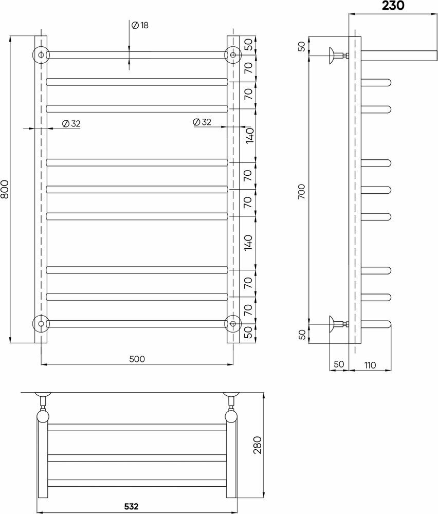 | ВКоробке | Полотенцесушитель - 1 шт. Комплект креплений - 1 шт. Комплект отражателей - 1 шт. Инструкция - 1 шт. |