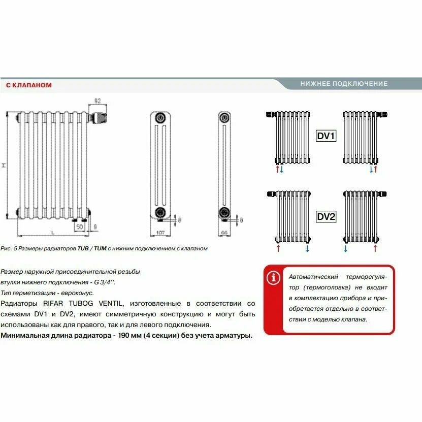 Радиатор стальной Rifar Tubog Ventil 1800 10 секций 2-трубчатый белый TUB 2180-10-DV1