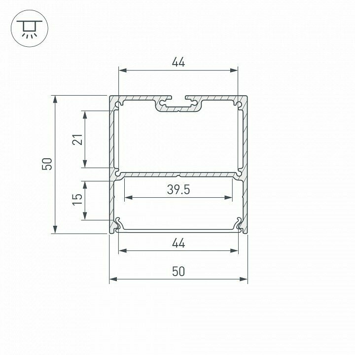 Алюминиевый анодированный профиль для светодиодных лент и линеек. Цвет - черный. Габаритные размеры (L×W×H): 2000x50x50 мм. Ширина площадки для ленты 39,5 мм. Отсек для БП 44х21 мм. Экраны, заглушки и другие аксессуары приобретаются отдельно. Цена за 1 метр.