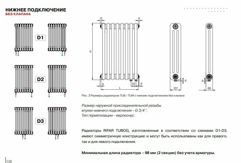 | Расположение подключения к отоплению | боковое проходное, боковое правое, боковое левое |