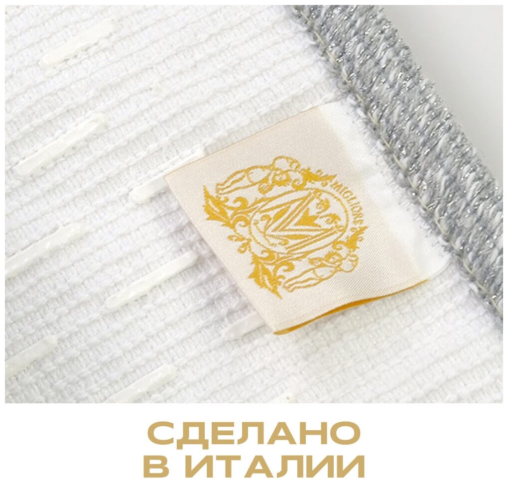 Бренд Migliore в своей продукции использует идеальное, сочетание материалов (полиэстер, хлопок) высокого качества, с полным отсутствием вредных для здоровья веществ. Рисунок, основной цвет исполнения Migliore Corona, отлично подходящий большинству дизайнерских решений. Ключевые габариты изделия: ширина 120 см, глубина 60 см. Прямоугольная форма прослеживается во всех линиях и придает аксессуару неповторимый стиль.