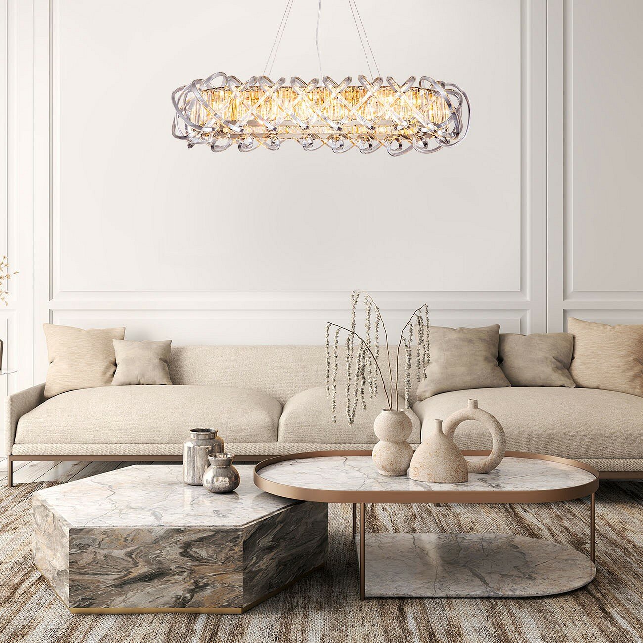 Подвесной светильник Indigo BRACCIA - это стильное и функциональное решение для освещения вашего дома.Светильник выполнен в золотистом цвете, что придает ему изысканный и роскошный вид. Материал арматуры - металл, а плафон изготовлен из хрусталя, что обеспечивает равномерное и яркое освещение.Светильник оснащен 12 лампочками с типом цоколя E14, мощностью 40 Вт каждая. Это обеспечивает достаточное освещение для больших помещений, таких как гостиная или зал.Управление светильником осуществляется механическим способом, что делает его удобным и простым в использовании.Светильник имеет степень пылевлагозащиты IP20, что гарантирует его безопасность и долговечность. Монтажная пластина обеспечивает надежное крепление светильника к потолку.Indigo BRACCIA - это не просто светильник, это элемент декора, который подчеркнет ваш вкус и стиль.