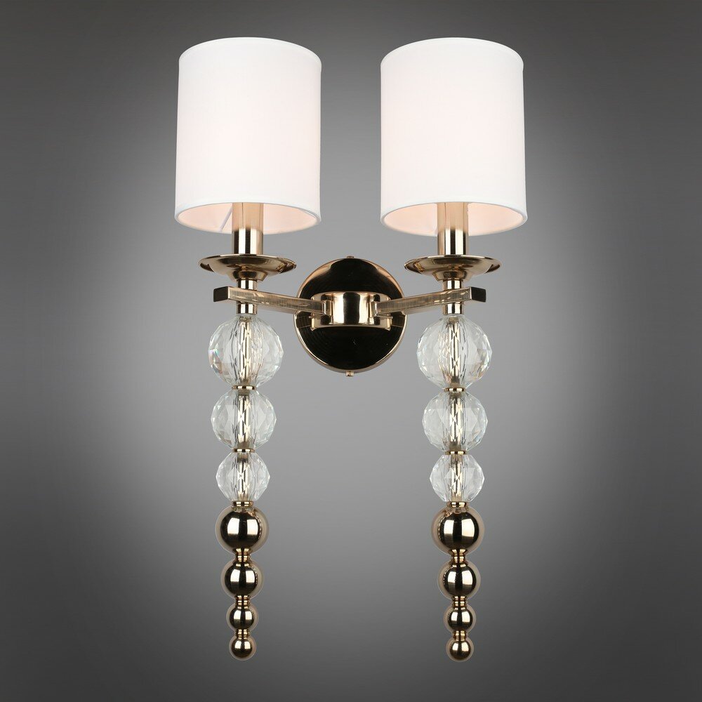 Floretta| Ткань + пластик | Настенный светильник | КлассикаКрасивые бра Floretta создадут приятную атмосферу романтики и станут важным завершающим штрихом любой интерьерной композиции. Настенный светильник визуально расширит пространство и подчеркнет все достоинства помещения, сохранив баланс между всеми элементами. Мягкий свет бра с золотым основанием и хрустальными вставками добавит насыщенности и глубины цветовым решениям мебели, отделки стен и декора. Бра украсит домашний кабинет, зону отдыха в гостиной или спальне. Представленные в коллекции Floretta двойные бра, в отличие от стандартных, можно использовать в уютном коридоре или прихожей и обойтись без использования основного света.Обратите внимание на стилистически близкие коллекции светильников: очаровательные Orian, восхитительные Zuzanna.