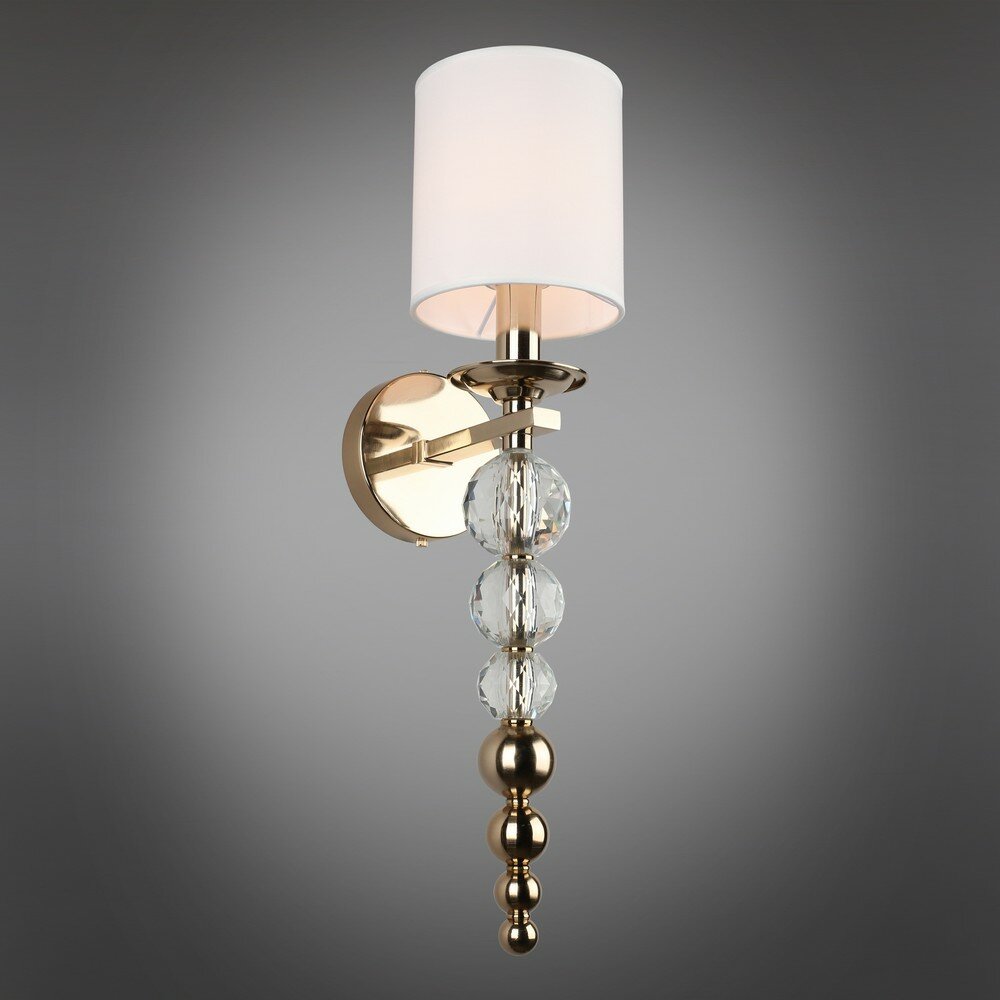 Floretta| Ткань + пластик | Настенный светильник | КлассикаКрасивые бра Floretta создадут приятную атмосферу романтики и станут важным завершающим штрихом любой интерьерной композиции. Настенный светильник визуально расширит пространство и подчеркнет все достоинства помещения, сохранив баланс между всеми элементами. Мягкий свет бра с золотым основанием и хрустальными вставками добавит насыщенности и глубины цветовым решениям мебели, отделки стен и декора. Бра украсит домашний кабинет, зону отдыха в гостиной или спальне. Представленные в коллекции Floretta двойные бра, в отличие от стандартных, можно использовать в уютном коридоре или прихожей и обойтись без использования основного света.Обратите внимание на стилистически близкие коллекции светильников: очаровательные Orian, восхитительные Zuzanna.