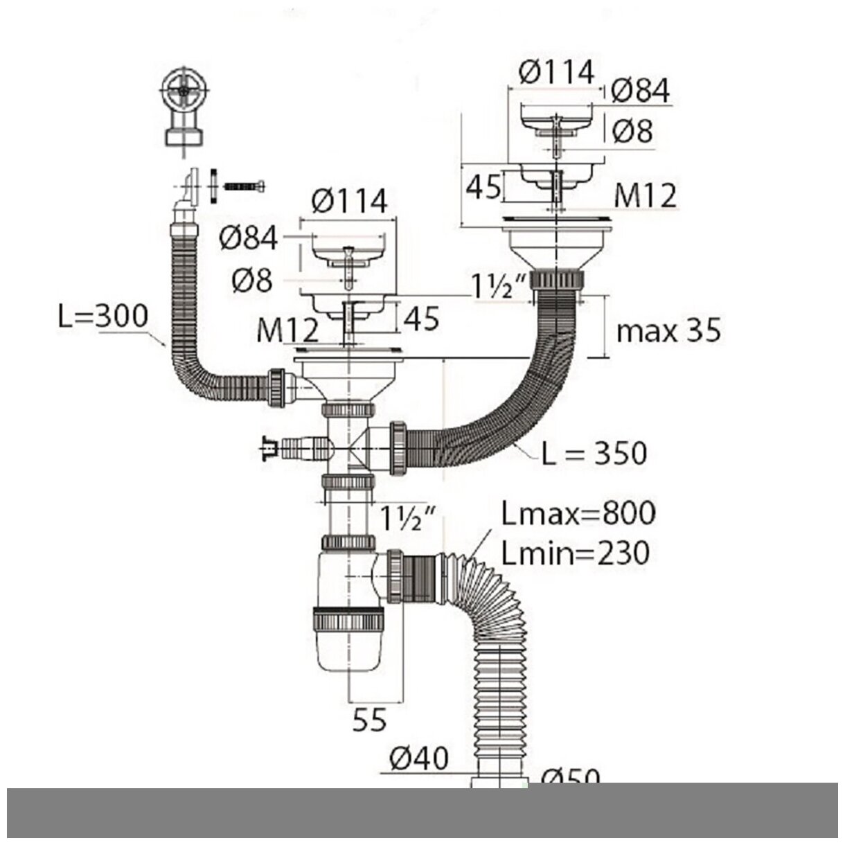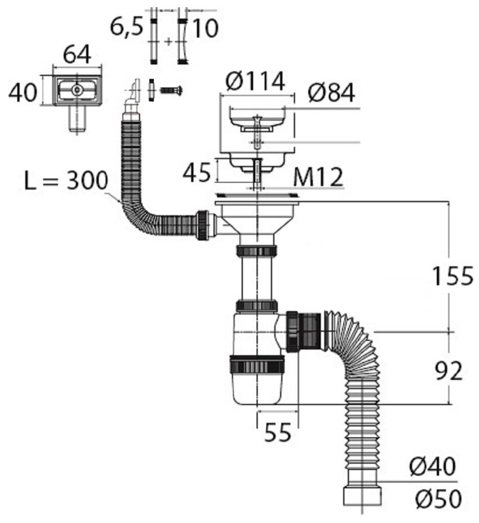 | Комплектация | сифон для мойки; выпуск с нержавеющей чашкой; перелив |