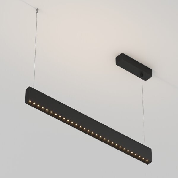 Подвесной линейный светильник 24 Вт. Цвет дневной 4000K, св.поток 1440 лм, CRI>90, угол 38°+100°. Корпус из черного алюминия. Размер LxWxH 578x24x60мм. Длина подвеса 500-1500 мм. Питание AC 220-240V, 24Вт, драйвер встроенный 24-42 В, 700 мА.