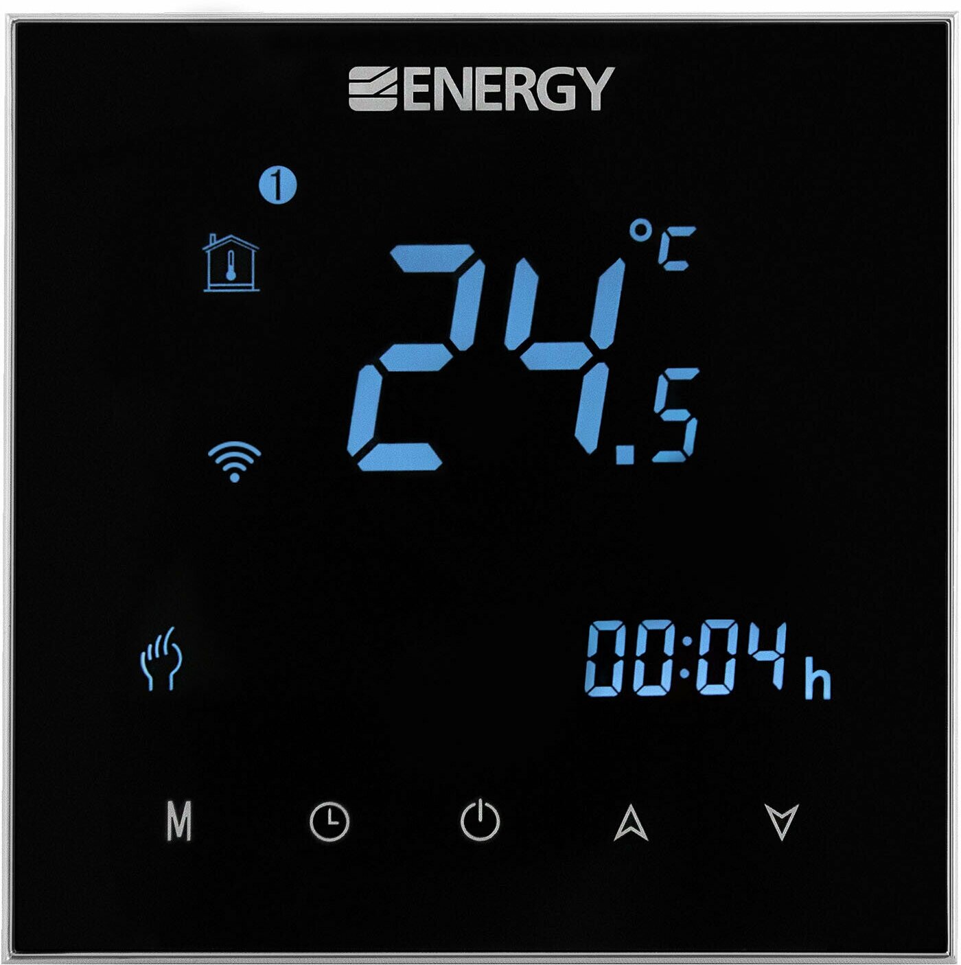 Современный программируемый терморегулятор с Wi-Fi подключением Energy BHT-2000 предназначен для управления температурой в системах теплый пол в двух режимах: ручном режиме и режиме "программа", при котором температура пола регулируется в соответствии с предустановленными вами графиками. Функция программирования позволяет настраивать 6 периодов работы теплого пола на будние дни + 2 отдельных периода работы на субботу и воскресенье. Для каждого периода устанавливается время начала работы, а также необходимая температура с точностью до 0,5°С в диапазоне от +5°С до +35°С. Данные о режимах работы сохраняются даже при выключенном питании. Функция программирования и точность настройки температуры снижают расходы на потребляемую электроэнергию до 60-80%. Терморегулятор оснащен функцией Wi-Fi подключения, благодаря которой вы сможете удаленно управлять теплым полом из любой геолокации. Wi-Fi управление осуществляется с помощью приложения Smart Life для IOS или Android. Вы также сможете подключать терморегулятор к системам "Умный дом" Amazon Echo, Google Home, Tmall Genie для комплексного управления климатом в доме. Модель Energy BHT-2000 комплектуется двумя датчиками температуры: встроенным датчиком температуры воздуха и выносным датчиком температуры пола NTC3950, благодаря чему устанавливать режимы обогрева можно, ориентируясь на температуру не только на полу, но и во всем помещении. Стильный черный корпус с сенсорным дисплеем имеет яркую подсветку по технологии Negative black screen, что позволяет удобно пользоваться регулятором даже в темное время суток. Уровень подсветки дисплея регулируется. Корпус выполнен из огнестойкого ударопрочного абс-пластика. Термостат также оснащен функцией блокировки от детей и функцией защиты от замерзания, с помощью которой можно поддерживать температуру пола на невысоком уровне в ваше отсутствие.