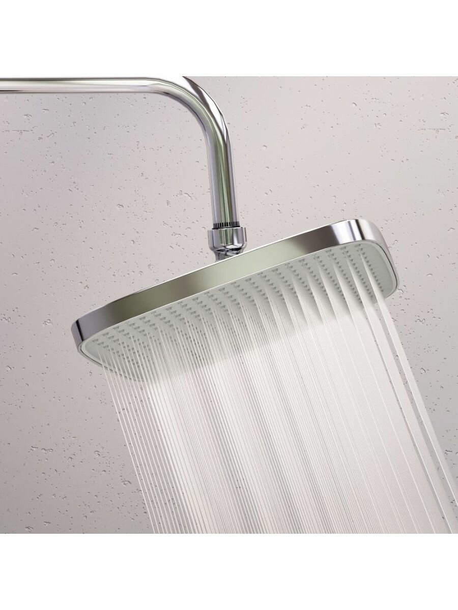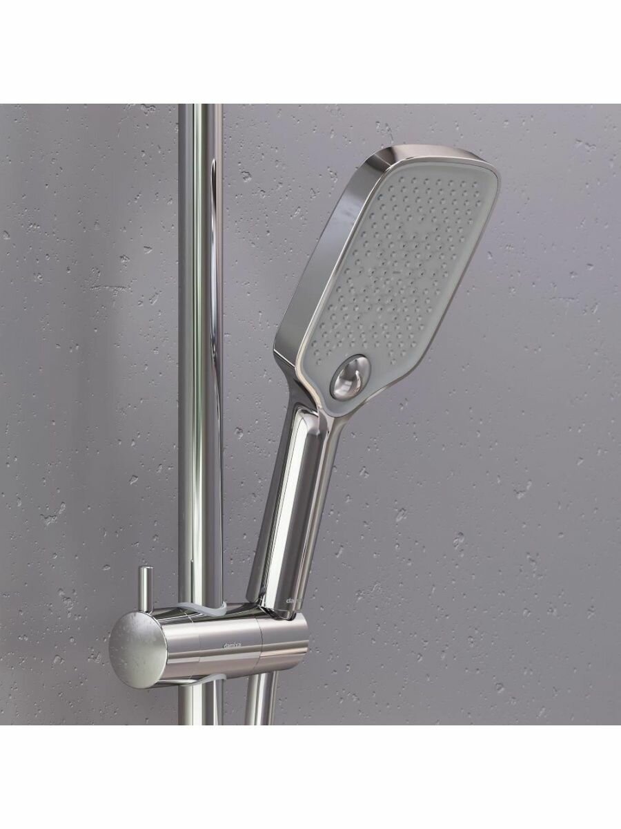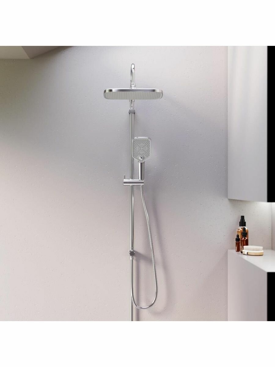 Душевая стойка Damixa . Душевая система Gala обладает мягкими геометричными формами которые идеально впишутся в современную ванную комнату. Простая и минималистичная на первый взгляд она чрезвычайно функциональна и удовлетворит даже самого искушенного пользователя. Благодаря телескопической штанге с диапазоном регулировки в 400 мм (1030 мм1460 мм) водные процедуры будут одинаково комфортны абсолютно для всех членов семьи. Настоящее SPA прямо у вас дома: увеличенный размер тропической лейки (220 мм) и 3 режима ручного душа сделают ваши ежедневные ритуалы незабываемыми. Простота и минимализм во всем: переключайте потоки воды между ручной и тропической лейкой всего одним нажатием. Специальное PVD-покрытие гарантирует чрезвычайную прочность душевой системы надежно защищая хромовое покрытие от механических повреждений коррозии и потери цвета. Поддерживать чистоту стало еще проще благодаря функции очистки резиновых форсунок Rub&Clean.
