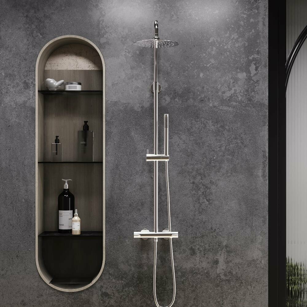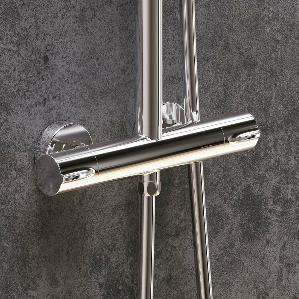 Душевая стойка Damixa . Душевые системы из коллекции Scandinavian Pure воплощение минималистичного датского дизайна и солидного скандинавского качества. Элегантные обтекаемые формы и ювелирный блеск станут настоящим украшением современной ванной комнаты. Максимальная безопасность: термостатический картридж 35 мм обеспечивает точную настройку температуры и напора воды. Выставляйте комфортные для вас параметры легким поворотом правой ручки смесителя. Увеличенный диаметр верхнего душа с возможностью регулировки угла наклона и ручная лейка в трендовой форме стика подарят вам полный спектр ощущений - помогут взбодриться утром и расслабится вечером. Переключайте потоки воды между ручной и тропической лейками плавным поворотом левой ручки смесителя. Инновационное покрытие High Gloss надежно защищает хромовую поверхность душевой системы от мелких повреждений и сохраняет ювелирный блеск на долгие годы.