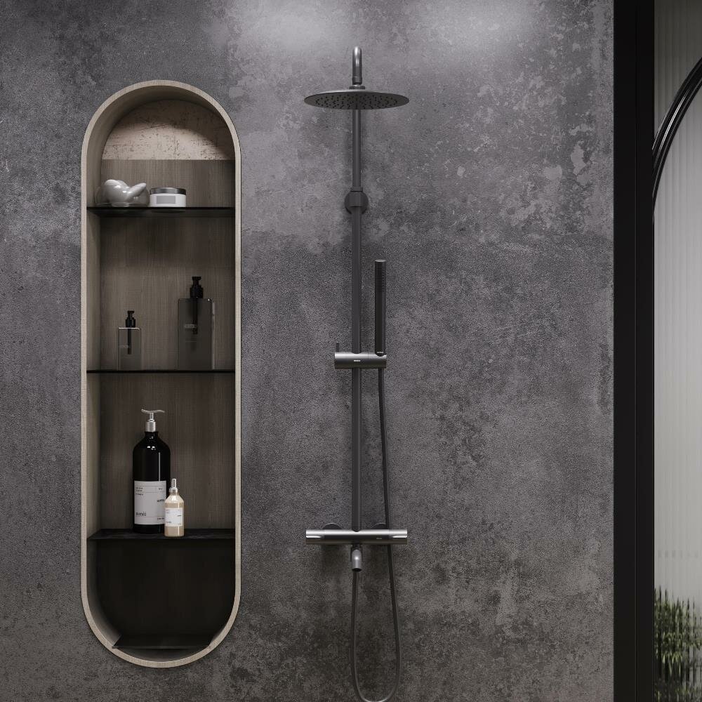 Душевая стойка Damixa . Душевые системы из коллекции Scandinavian Pure воплощение минималистичного датского дизайна и солидного скандинавского качества. Элегантные обтекаемые формы и матовое черное покрытие станут настоящим украшением современной ванной комнаты. Максимальная безопасность: термостатический картридж 35 мм обеспечивает точную настройку температуры и напора воды. Выставляйте комфортные для вас параметры легким поворотом правой ручки смесителя. Увеличенный диаметр верхнего душа с возможностью регулировки угла наклона и ручная лейка в трендовой форме стика подарят вам полный спектр ощущений - помогут взбодриться утром и расслабится вечером. Переключайте потоки воды между ручной и тропической лейками плавным поворотом левой ручки смесителя. Инновационное PVD-покрытие гарантирует чрезвычайную прочность душевой системы. Матово-черная поверхность не выцветает с годами и устойчива к механическим повреждениям загрязнениям и отпечаткам пальцев.