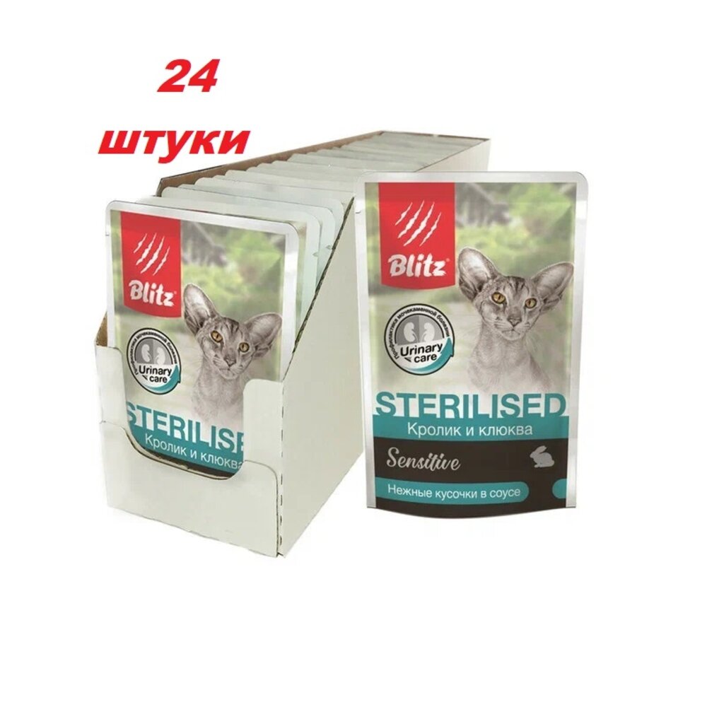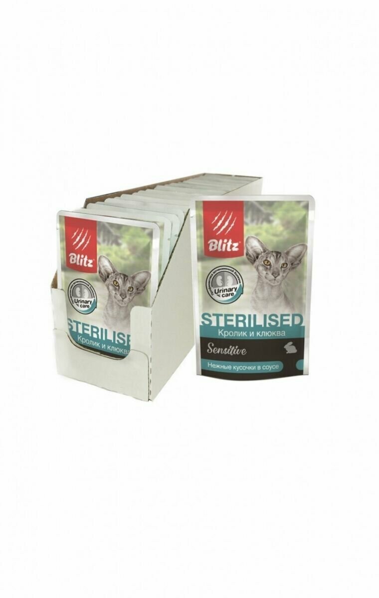 Blitz Sensitive Sterilised пауч для стерилизованных кошек и кастрированных котов (кусочки в соусе) (Кролик и клюква 85 г.)