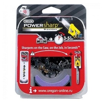Система заточки PowerSharp® - это легкая в использовании, точная система заточки, позволяющая пользователям цепной пилы затачивать цепь в считанные секунды при помощи простого приспособления. Быстрая. От тупой цепи к острой всего за 3 секунды. Легкая. Всего лишь три шага для быстрой и легкой заточки. Портативная. Заточное устройство, которое крепится на шину, имеет небольшой вес, высокую надежность и заметность. Точная. Точное выравнивание между заточным камнем и пильным полотном для идеальной заточки цепи. Прочная. Цепь PowerSharp® такая же прочная и надежная, как и другая, калиброванная низкопрофильная цепь OREGON® 3/8”.