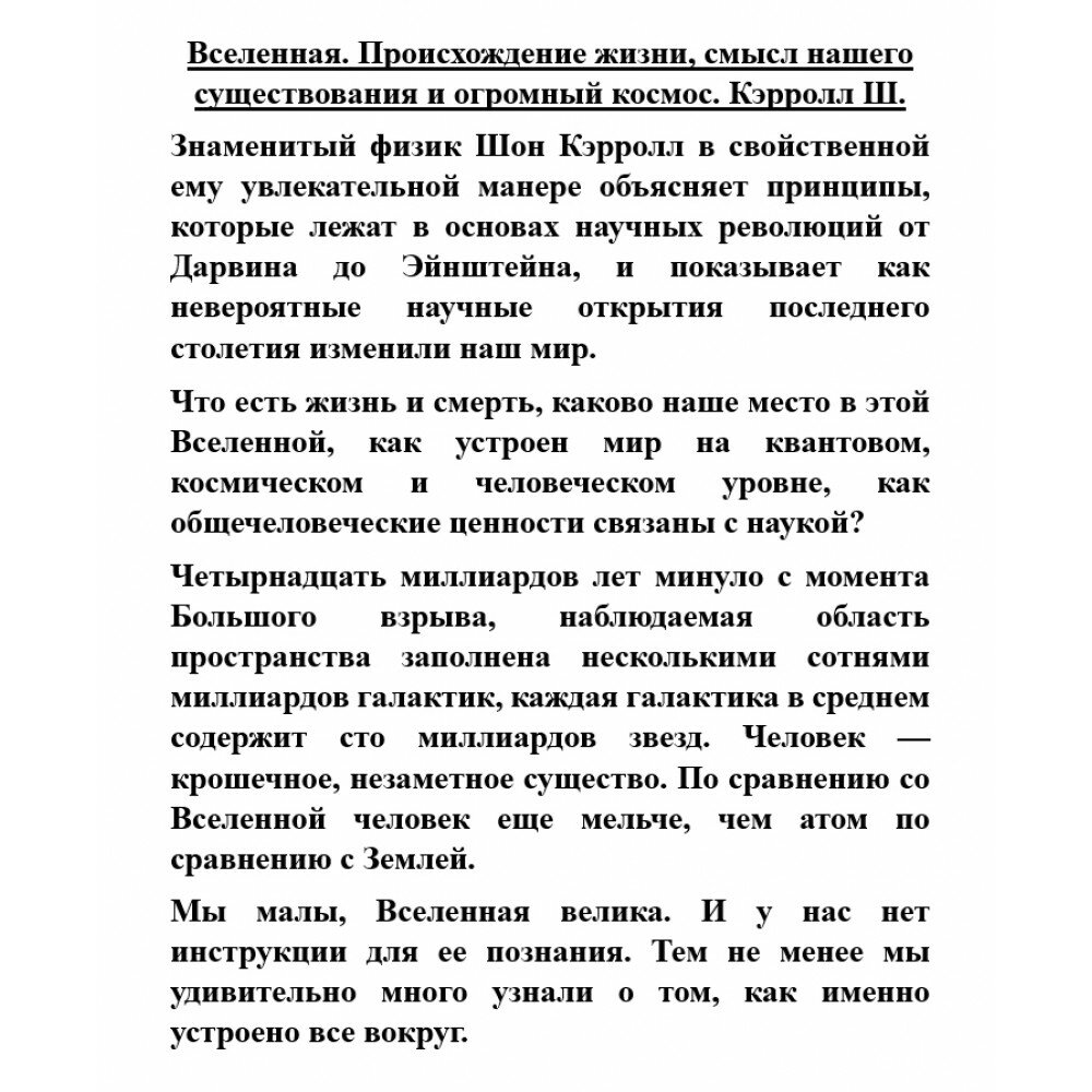 Вселенная. Происхождение жизни смысл нашего существования и огромный космос (Шон Кэрролл); Издательский дом "Питер", 2023