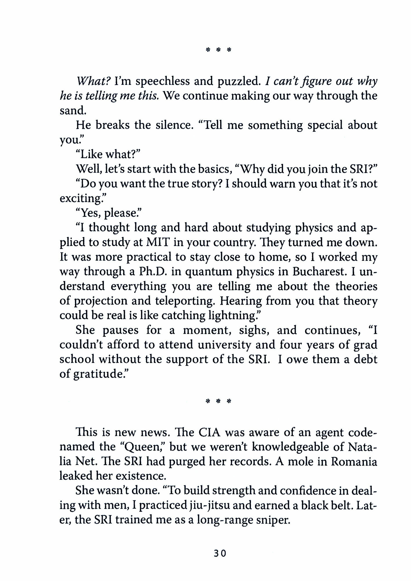 New York Times Bestselling author Craig T. Bouchard creates a daring, unique, and an action-packed new genre in his novel Natalia's Game. The themes of the novel include evolving global relations (involving Russia, Romania, the UK, and the United States of America), a love story between two modern-day spies, and a quantum physics twist that all characters must learn to navigate. Each avenue Bouchard writes about is detailed, going deep into the world of spies as the pages turn. With subtle intel, romance, and up-to-date global issues at the heart of this story, it's hard to turn away.