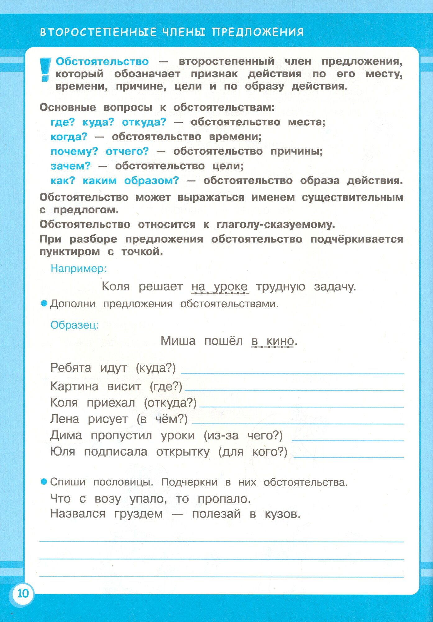 Эта книга адресована учащимся четвёртого класса. Она соответствует учебной программе и направлена на закрепление знаний, полученных на уроках русского языка. Книга предназначена для дополнительных занятий русским языком дома и на факультативных занятиях в школе. В пособии представлены задания, развивающие разговорные навыки, расширяющие активный словарь, задания на усвоение правил орфографии и пунктуации русского языка, задания на закрепление навыков звуко-буквенного анализа слов, задания на освоение морфемного состава слов, задания на изучение основ морфологии, а также ряд творческих заданий.