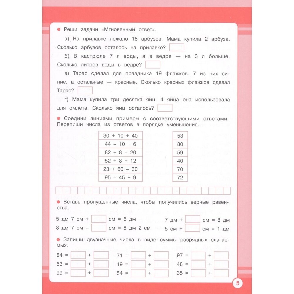 Эта книга адресована учащимся второго класса. Она соответствует учебной программе и направлена на закрепление знаний, полученных на уроках математики. Книга предназначена для дополнительных занятий дома и на факультативных занятиях в школе. В пособии представлены задания, направленные на развитие вычислительных навыков, логического мышления, навыков работы с линейкой, а также на тренировку умений определять время и оперировать деньгами.