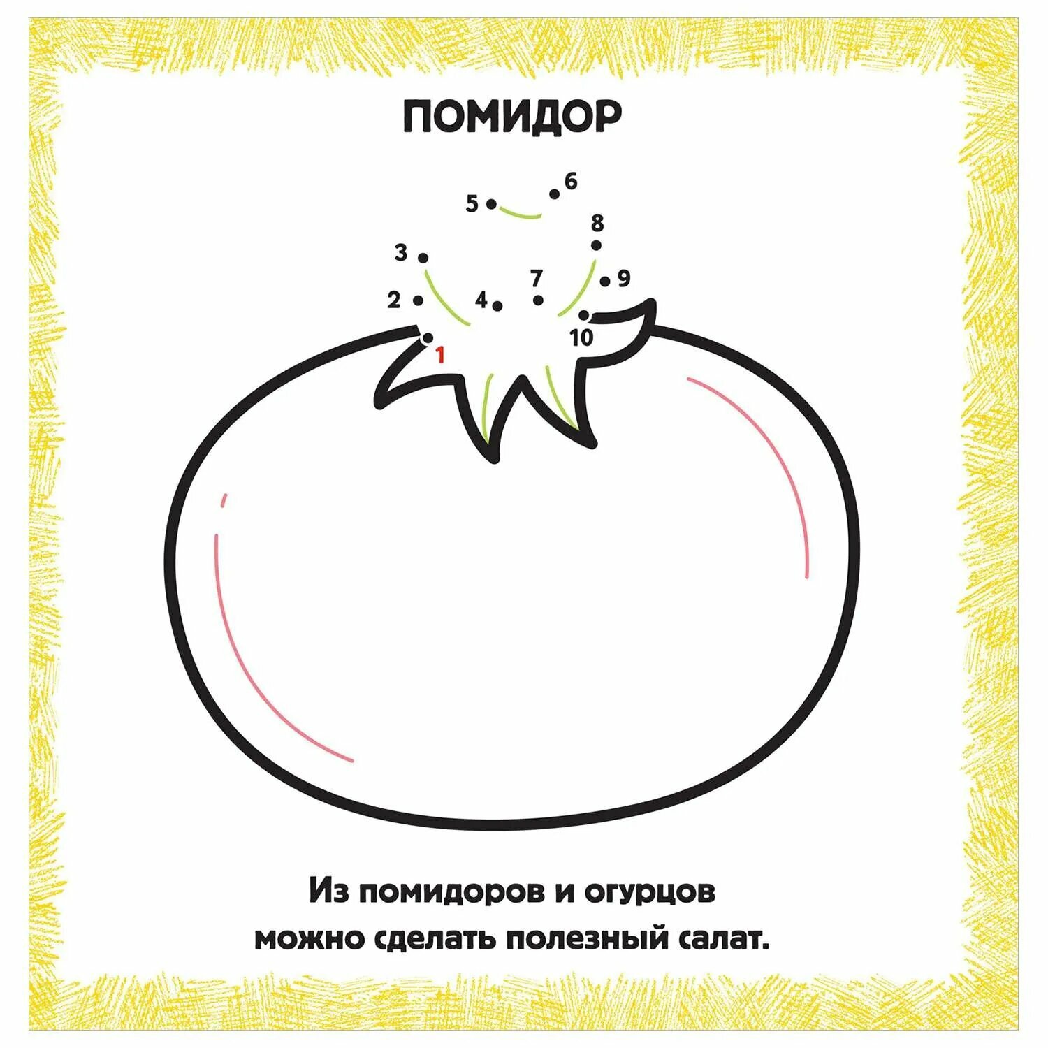 Это весёлая обучающая раскраска для первого знакомства с цифрами. С её помощью малыш быстро научится счёту от 1 до 10, соединяя точки по порядку, и узнает много интересного о фруктах и овощах, которые каждый день видит вкруг.