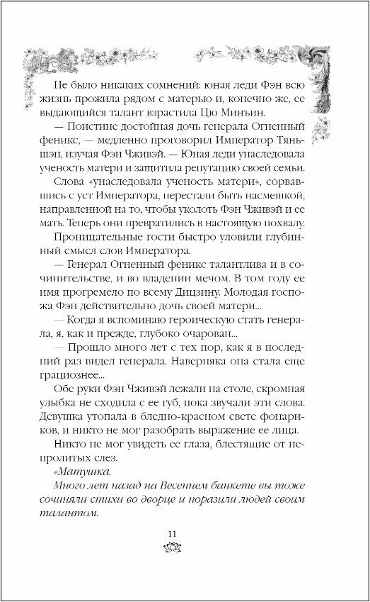 Обожаю фэнтези от авторов Поднебесной, эта книга не стала исключением. Изящный сюжет с тонкими интригами и борьбой за власть и свободу. Здорово прорисован персонаж главной героини, сильная, волевая харизматичная. Книга прекрасно оформлена, белая мелованная бумага, красивая обложка - приятно держать в руках и на полке занимает достойное место. Прочла с удовольствием.