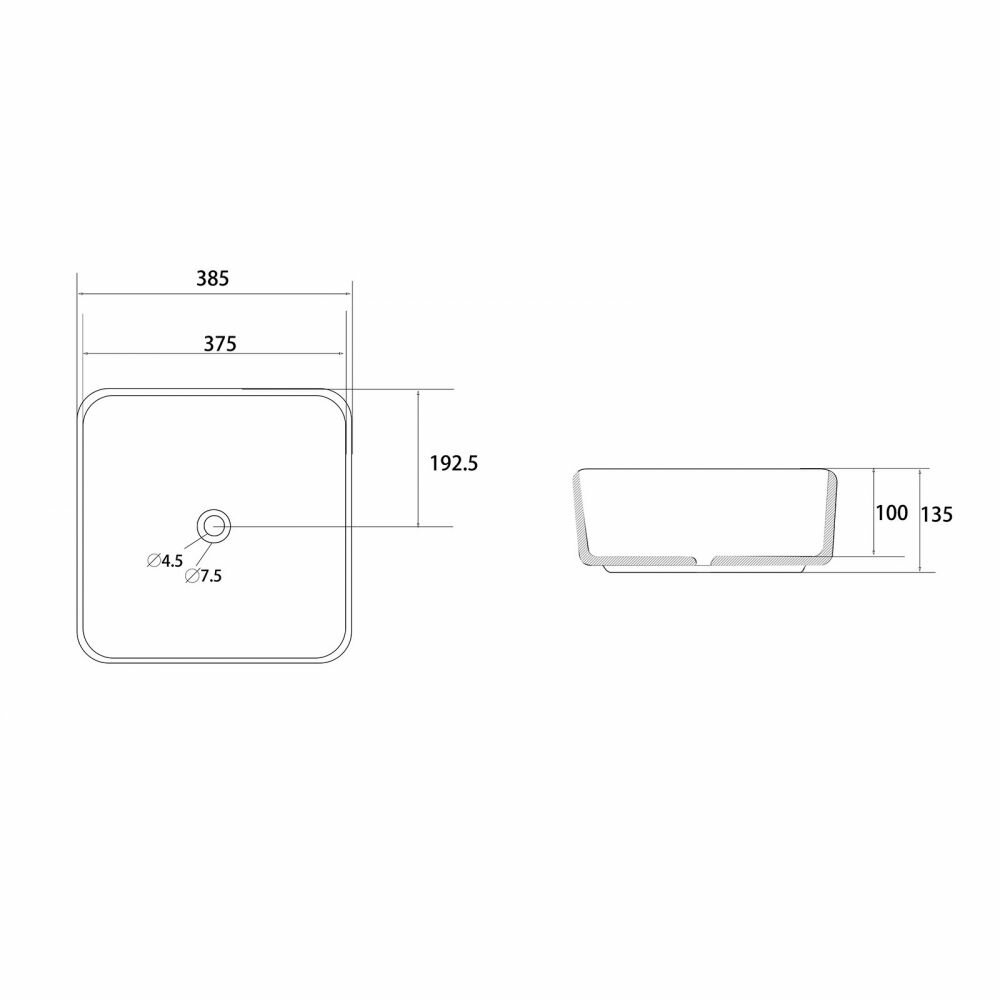 Раковина Abber Rechteck 38,5х38,5 AC2211MW. Материал: Фаянс. Накладная. Стиль: Современный. В комплекте поставки: Раковина-чаша.