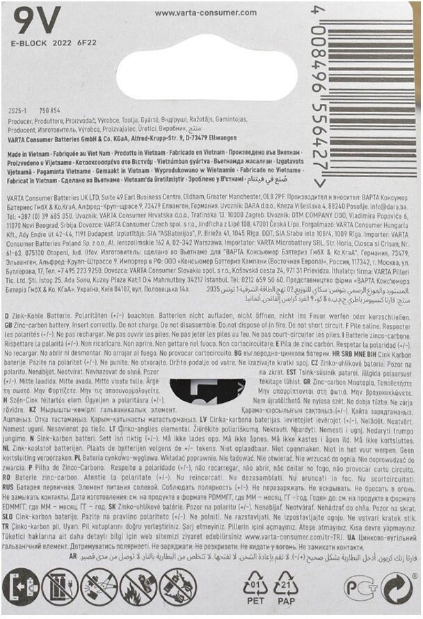 На сегодняшний день товар «Батарейка Varta 02022101411 BL1 Heavy Duty 9V (2022) (1/10/50) SUPERLIFE Крона 6F22» можно купить с кешбеком в 3 магазинах: xcom-shop, Яндекс.Маркет, E2e4online