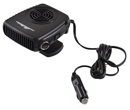 Автомобильный обогреватель позволяет максимально быстро увеличить температуру в салоне транспортного средства, а также изделие играет роль вентилируемого устройства при жарких погодных условиях. Обогреватель работает от сети прикуривателя автомобиля с напряжением питания 12В. Для удобства при эксплуатации предусмотрена подставка, расположенная под корпусом изделия, а также откидная ручка.