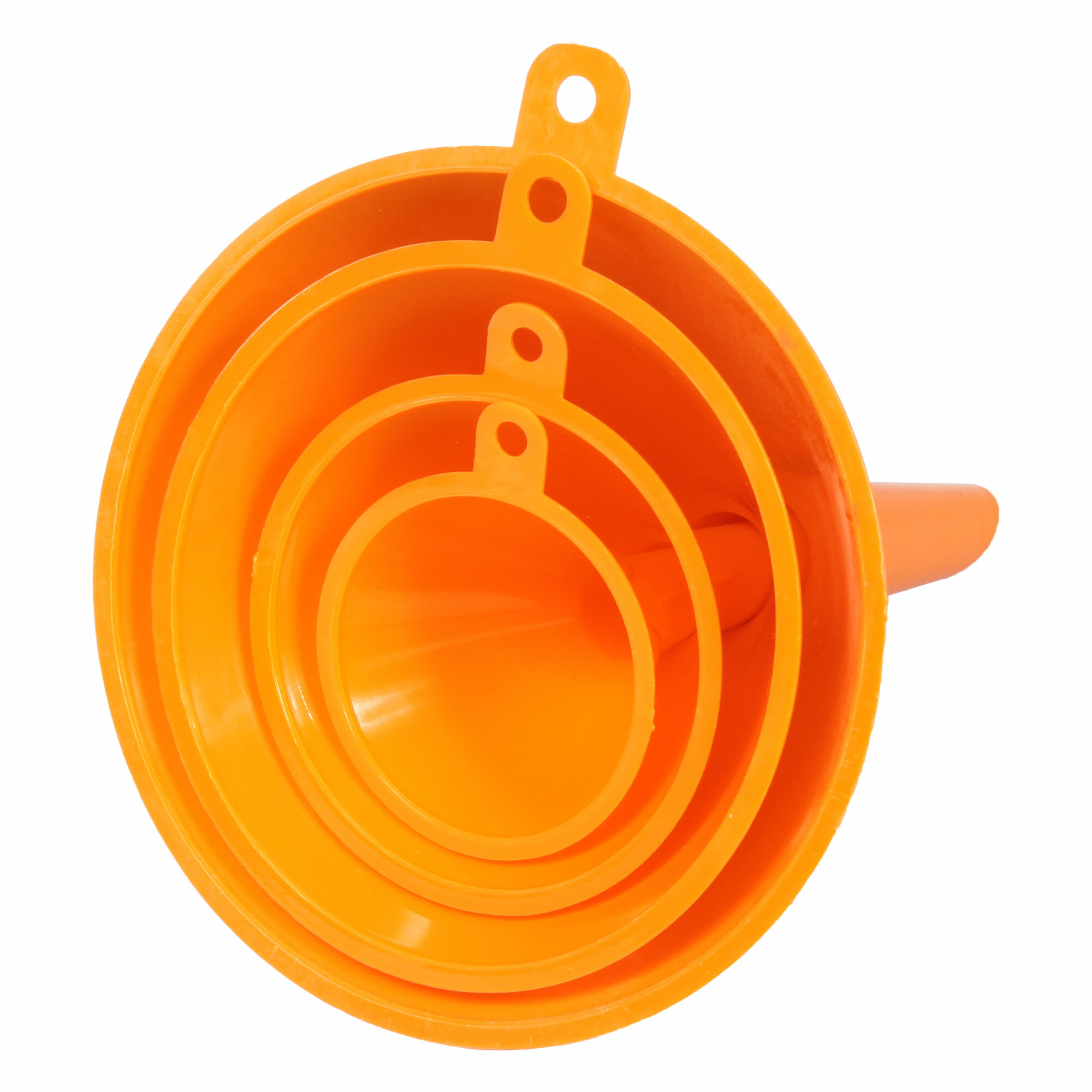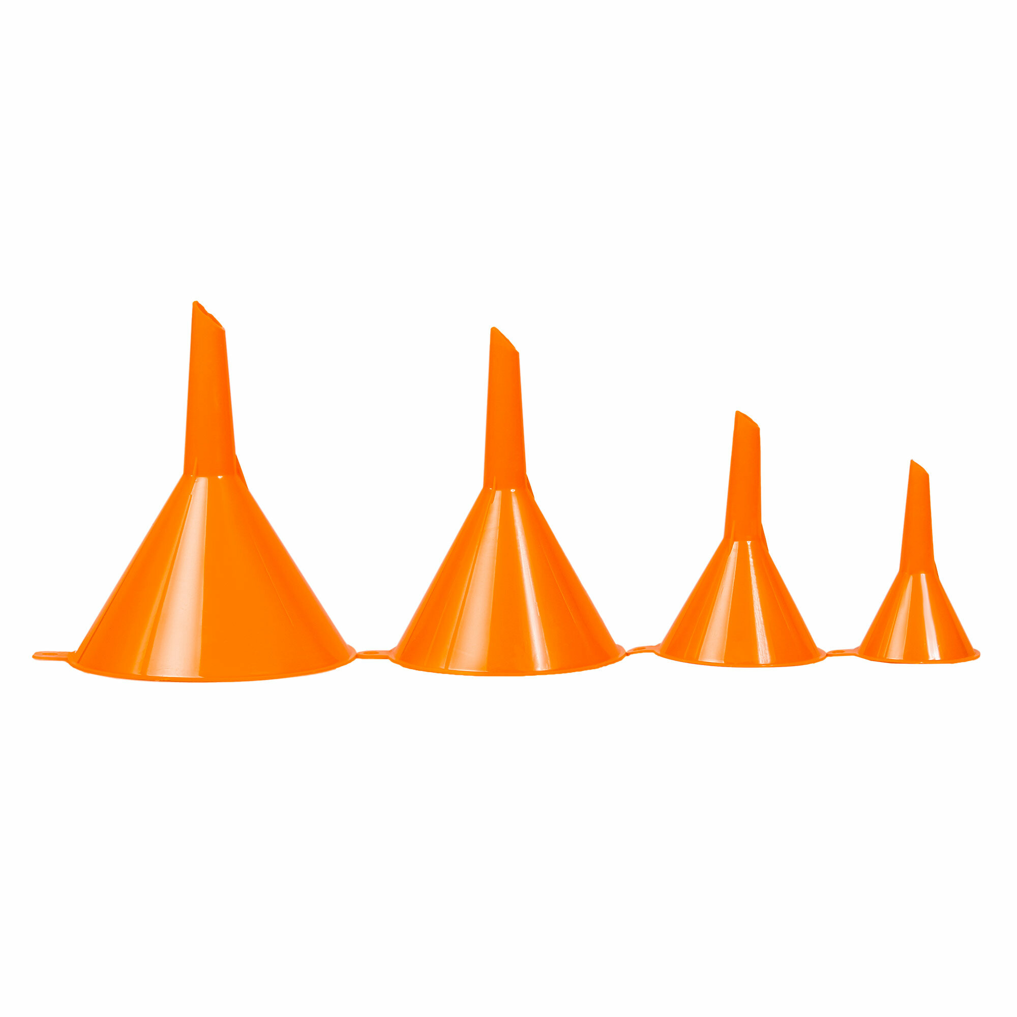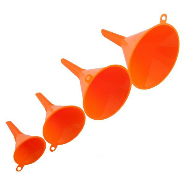 Воронки данной модели имеют традиционную форму и пластиковый корпус. В наборе представлены 4 воронки различных размеров. Комплект воронок позволяет подобрать необходимый размер изделия исходя из потребностей при переливании. Воронки легко очищаются от загрязнений и состоят из прочного пластика.