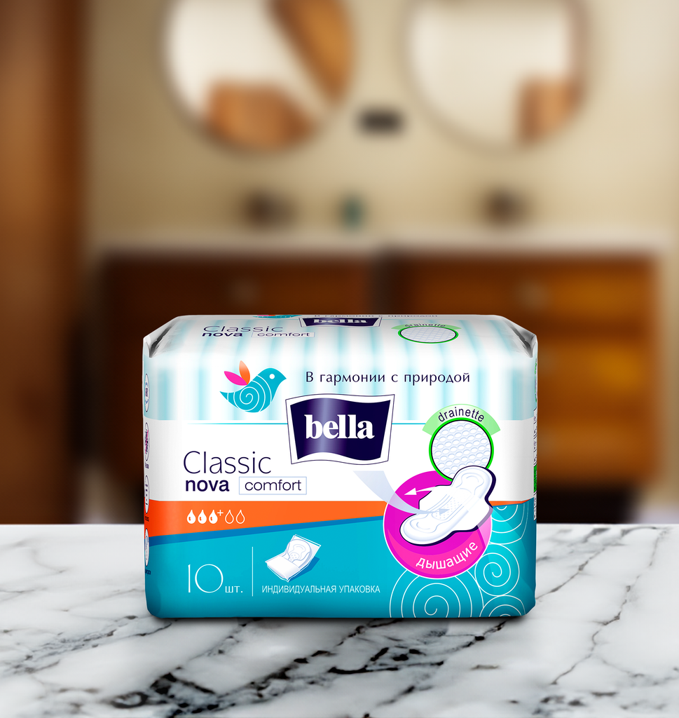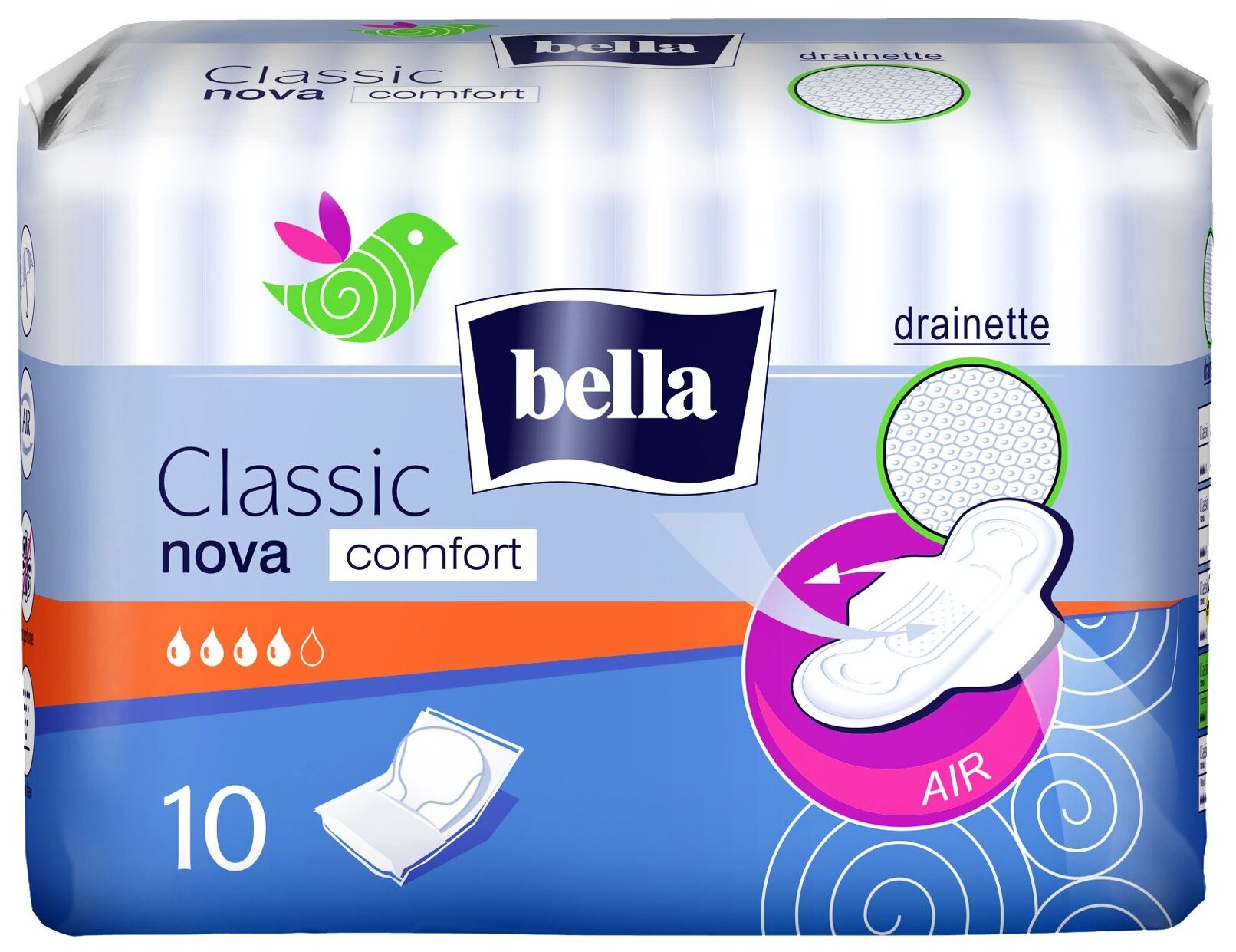 Женские прокладки Bella Nova Classic Comfort Drainette Air (10 шт): надёжная защита и комфорт на каждый день — дышащий верхний слой, мягкость и уверенность даже в пути.