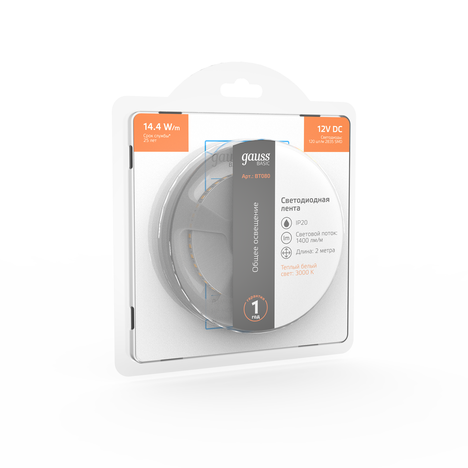 Светодиодная лента Gauss 144W/m 120LED/m 2835SMD теплый белый 2M BT080