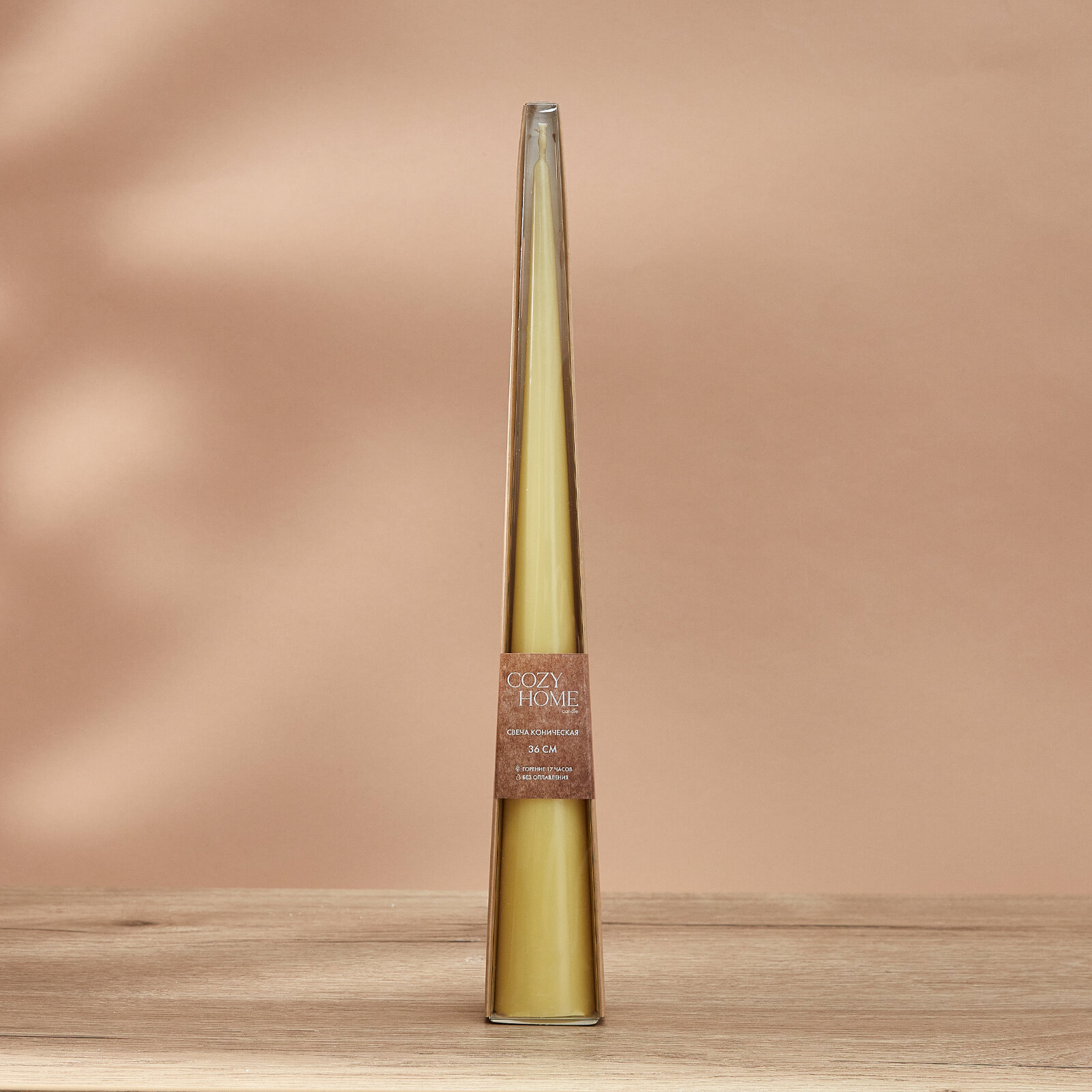 Парафиновая свеча от Cozy Home лимонного цвета высотой 37 см и диаметром 4,7 см.