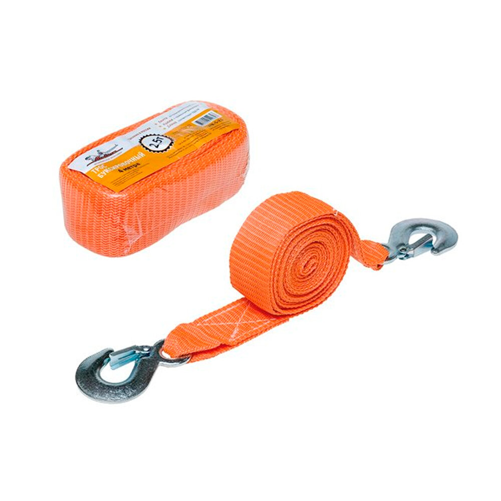 | Рабочие спецификации | Буксировочный ленточный трос Airline изготовлен из специальной прочной полипропиленовой нити, что увеличивает срок его службы. Крюки троса изготовлены с применением пружинных фиксаторов, для более качественной и безопасной фиксации.,,Максимальная нагрузка:2500 кг |