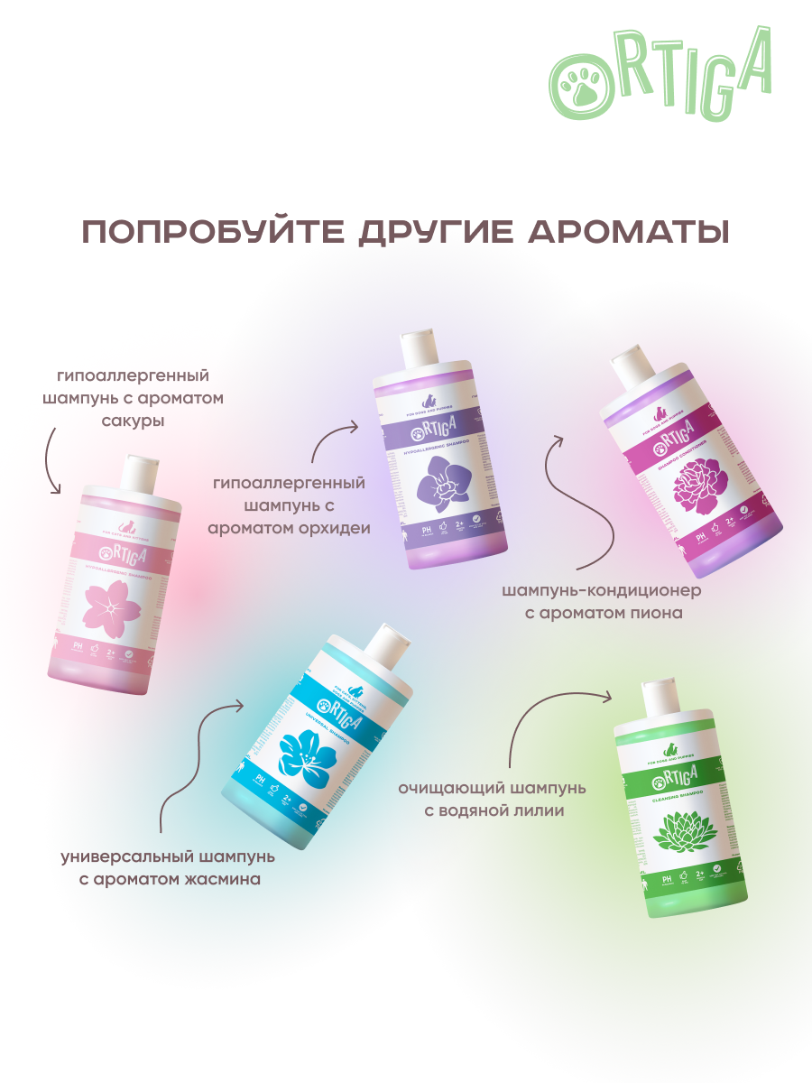 Ortiga очищающий шампунь для собак всех пород с ароматом водной лилии (450 мл.)