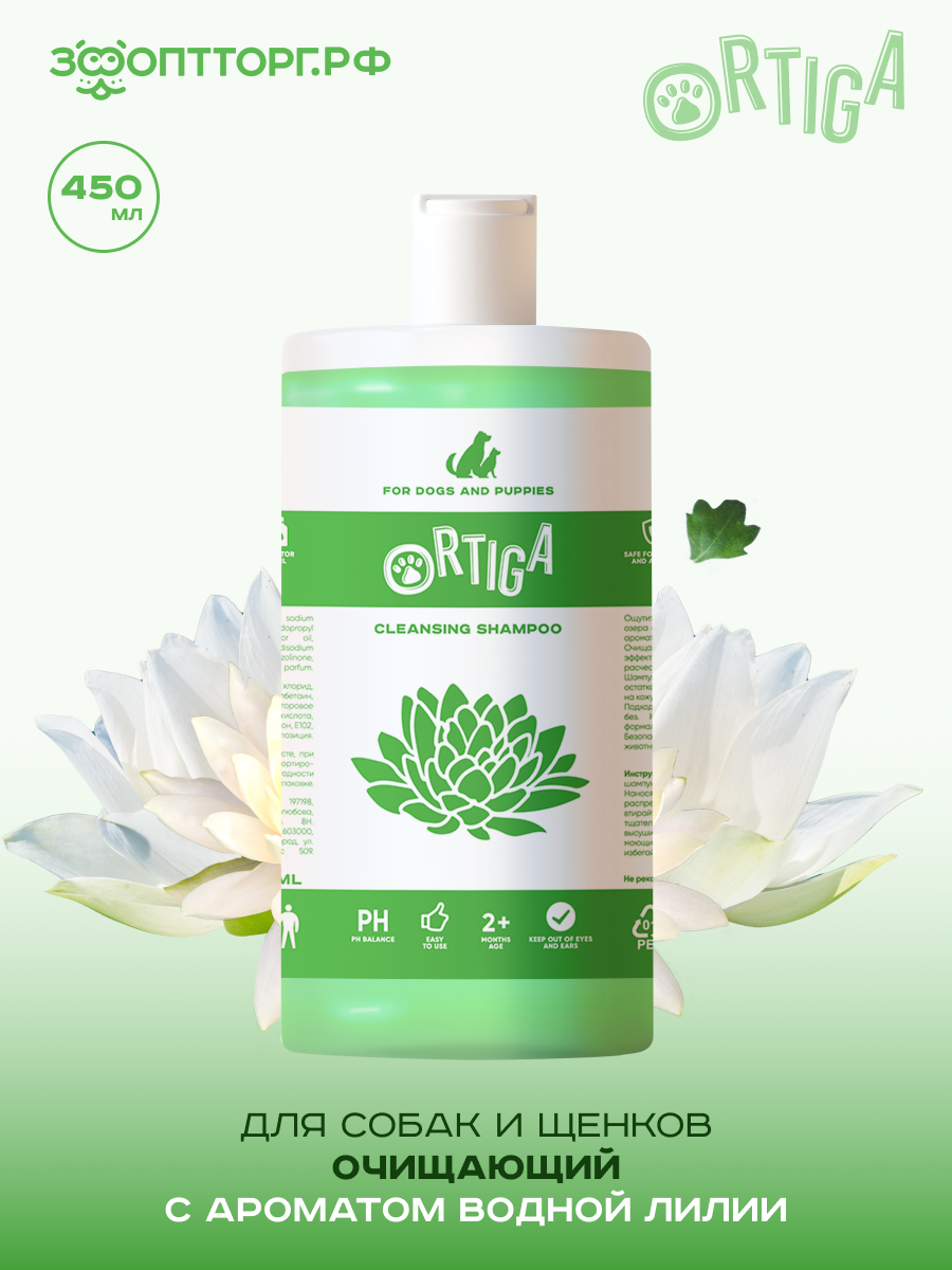 Сервис сравнения цен СкидкаГИД предлагает сравнить цены на товар «Ortiga очищающий шампунь для собак всех пород с ароматом водной лилии (450 мл.)»