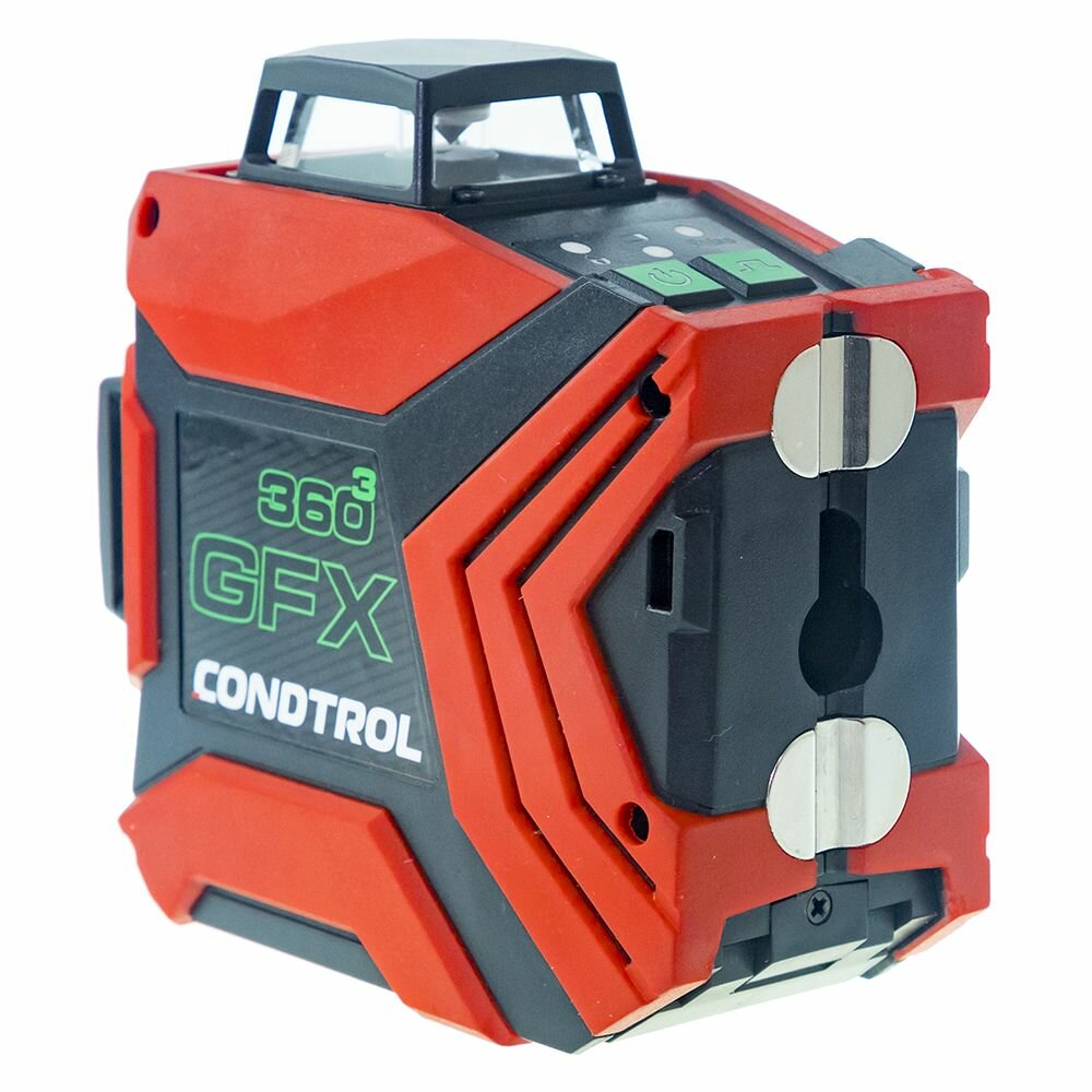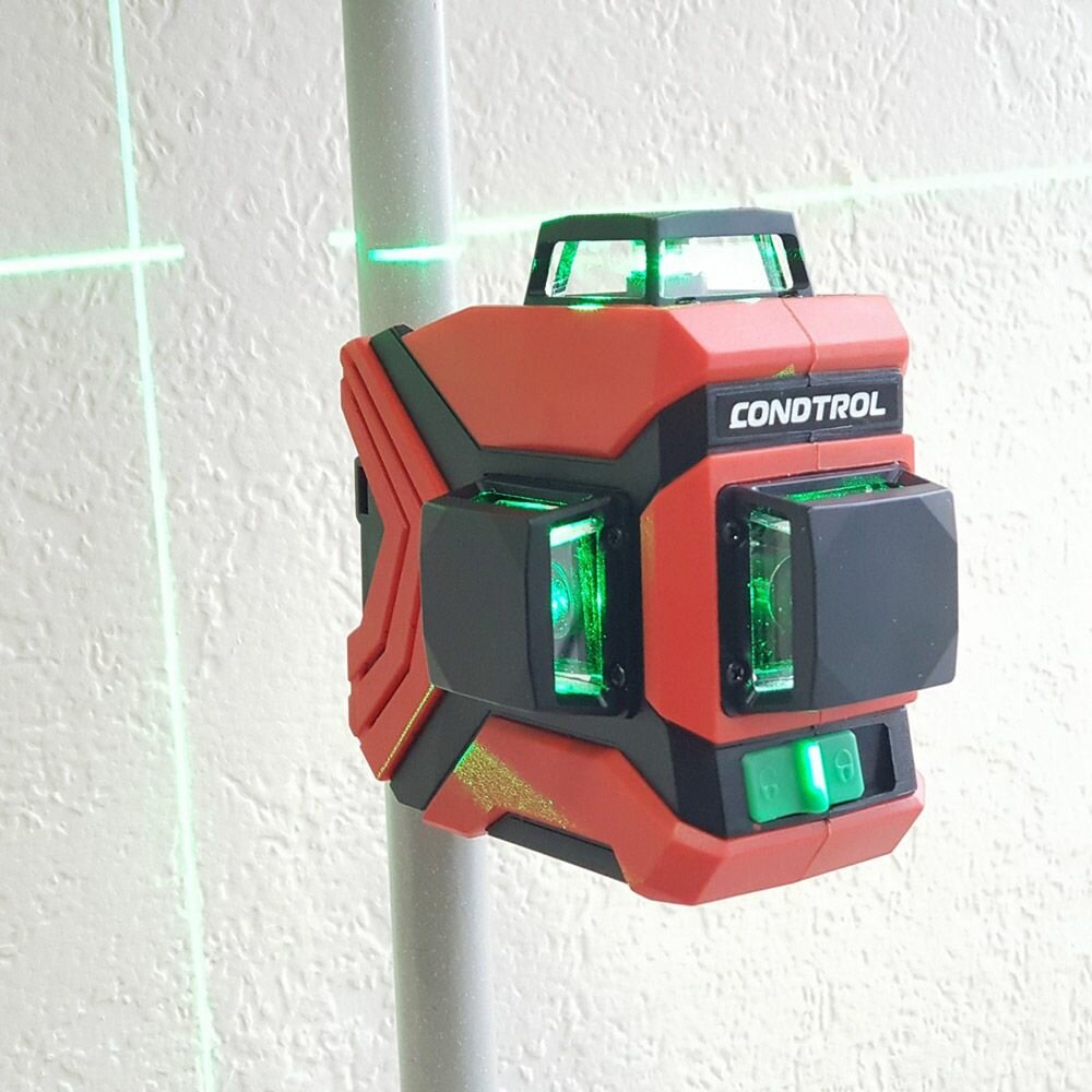Лазерный уровень-нивелир GFX 360-3 сочетает в себе максимально возможный функционал с последними достижениями в отрасли лазерных инструментов. Нивелир имеет оригинальный корпус с высокой степенью защиты от ударов и оснащен тремя зелеными лазерами: прибор проецирует две ортогональные вертикальные плоскости с развёрткой в 360 градусов и горизонтальную плоскость с разверткой в 360°. Все плоскости можно включать по отдельности, это позволит существенно сэкономить заряд аккумулятора. Зеленый лазер проецирует линии повышенной яркости. Эффект достигается за счет особенностей восприятия зеленой волны человеческим глазом, поэтому потребляемая мощность прибора не увеличивается, сохраняя заряд аккумулятора, а диапазон работы с прибором возрастает. Предусмотрены встроенные в корпус нивелира дополнительные точки крепления: 1. Мощные магниты в корпусе для крепления на металлических конструкциях. 2. Специальный паз в корпусе для крепления с помощью обычного хомута на немагнитных конструкциях (брусок, труба). Многоразовый хомут идет в комплекте. 3. Петля на корпусе под саморез для простого крепления на стену или фирменный аксессуар CONDTROL Clamp. 4. Резьба для крепления на штатив 1/4. Лазерный нивелир condtrol GFX 360-3 пригодится для построения наклонных линий. Ударопрочный корпус имеет класс пыле- и влагозащиты IP54. Комплектация: лазерный нивелир, кабельная стяжка, Li-ion аккумулятор, кабель для зарядки, адаптер для батареек, магнитная мишень, настенное крепление, очки, руководство по эксплуатации, пластиковый кейс.