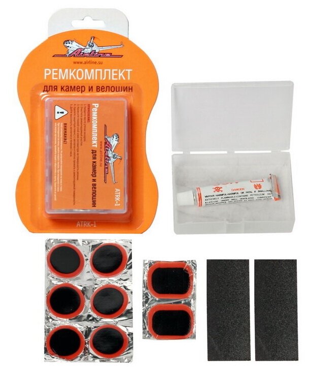 Ремонтный комплект из серии AIRLINE предназначен специально для велосипедных шин и автомобильных камер. В комплекте представлены заплатки круглой и прямоугольной формы, наждачная бумага, необходимая для зачистки, а также тюбик клея. Принадлежности хранятся в пластиковом кейсе, в котором удобно хранить и транспортировать весь комплект.
