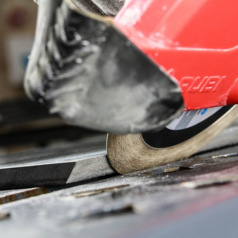 Разработан для эффективной резки под 45 градусов. Утолщенная ступица делает корпус жестким, не позволяя диску уклоняться в сторону. Конструкция алмазного слоя типа «сендвич»: крупный алмаз в центре и мелкий по краям. Такое решение обеспечивает высокую производительность резания и чистовую подшлифовку кромки одновременно!