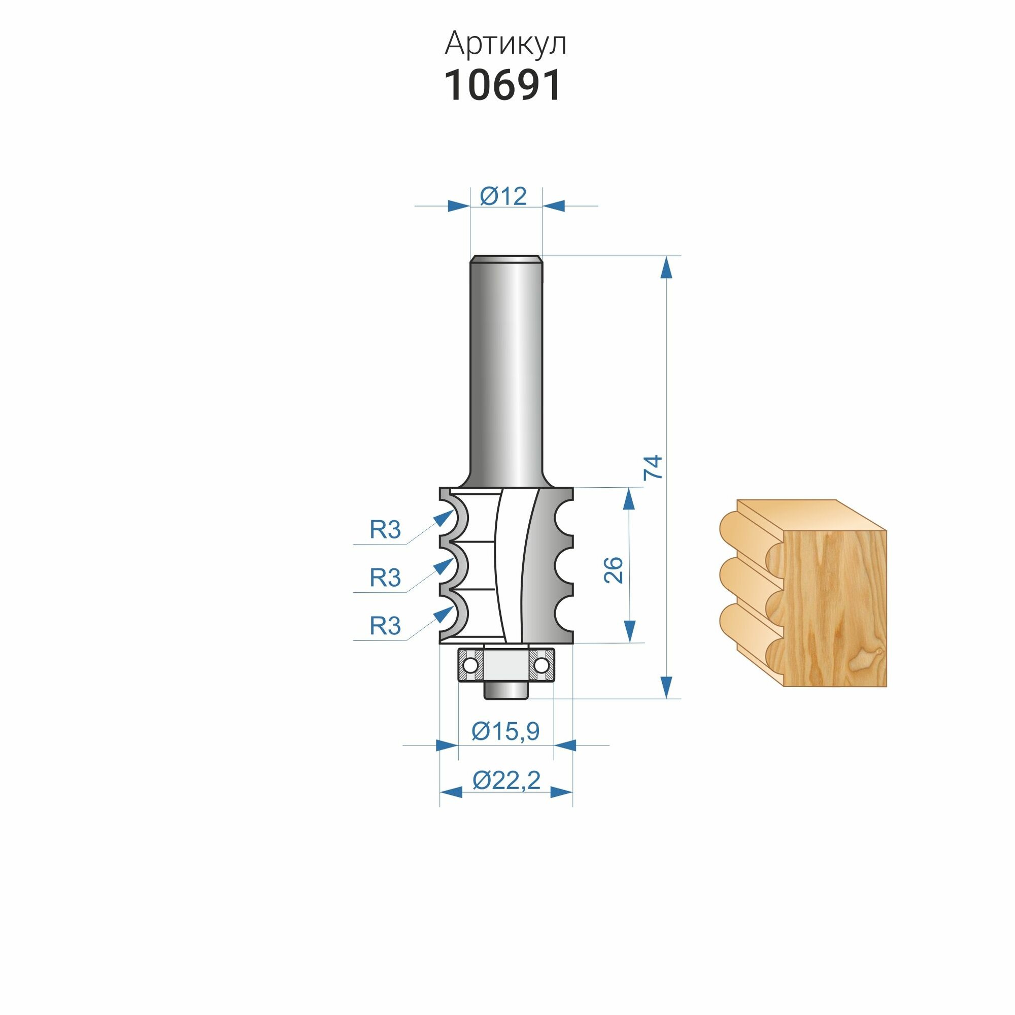 Фреза кромочная фигурная Энкор 222*26мм хв.12мм 10691