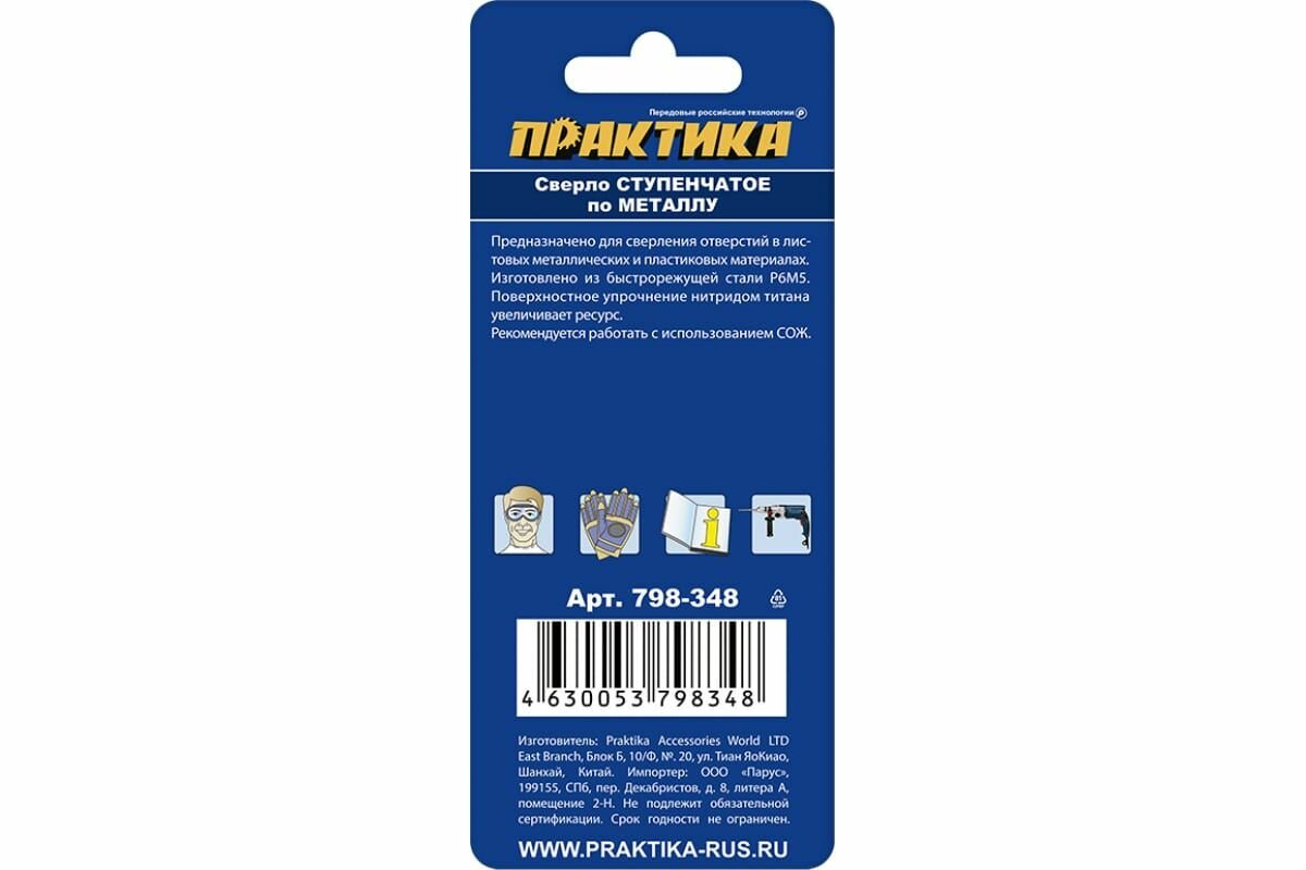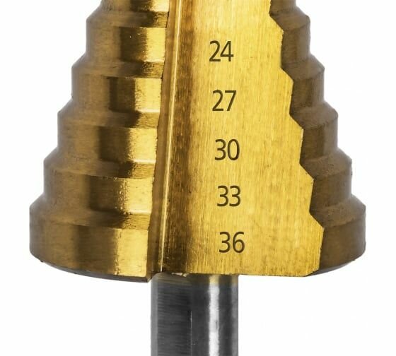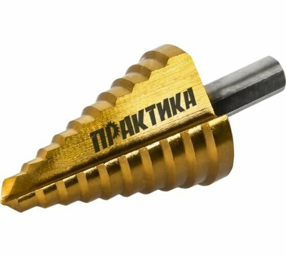 Сверло по металлу ступенчатое 9-36 мм шаг 3 мм TIN ПРОФИ ПРАКТИКА 798-348 предназначено для сверления отверстий в листовых металлических и пластиковых материалах.