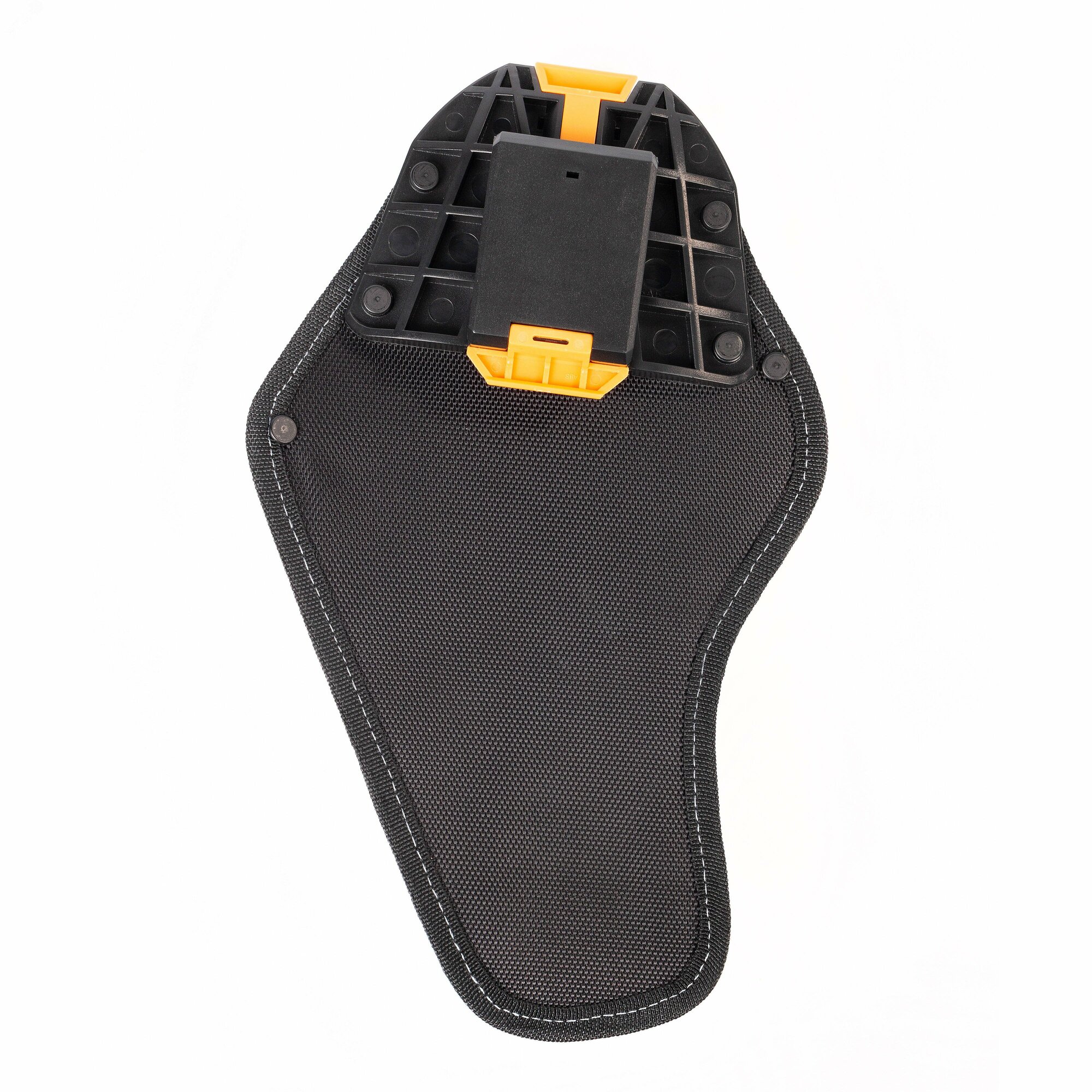 Быстросъемная система «Quick-Lock» позволяет с легкостью снять, заменить или закрепить сумку на поясном ремне. Конструкция: 1 основное отделение для шуруповерта, фиксирующееся ремешком с замком, 2 широких сквозных кармана, 6 мини-карманов для узких предметов. Предназначена для размещения шуруповерта, дрели или подобных инструментов среднего размера. Ремешок с пластиковым замком предохраняет инструмент от выпадения из кобуры. Съемная клипса и держатель системы «Quick-Lock» сделаны из прочного ABS-пластика. Система «Quick-Lock» позволяет моментально закрепить сумку на любом ремне. Металлические заклепки в местах наибольшей нагрузки на сумке.