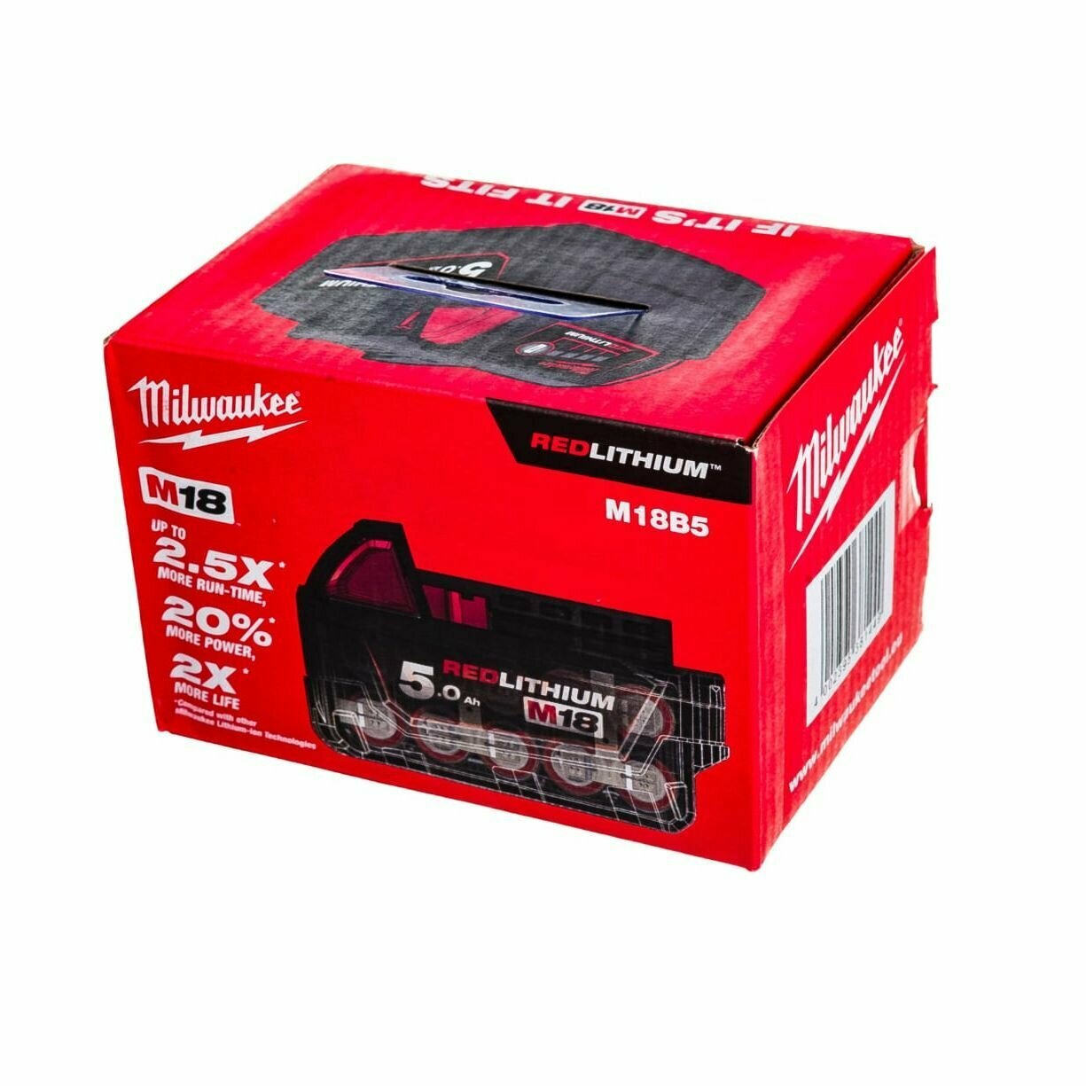 В 2.5 раза дольше время работы, на 20% больше мощности и в 2 раза больше циклов подзарядки по сравнению с другими Li-Ion технологиями и предыдущими Milwaukee® аккумуляторными технологиями. (Результат зависит от инструмента и применения). REDLITHIUM Milwaukee®, интеллектуальная система REDLINK™ обеспечивает защиту от перегрузки. Индивидуальный мониторинг каждой ячейки аккумулятора для оптимизации времени заряда / разряда и долговечности. Прочная металлическая рама с противоударными сепараторами предотвращают поломки батареи от вибрации и падений. Водоотводящие каналы внутри батареи препятствуют попаданию влаги на электронику и выводят её наружу. Может использоваться при экстремальных температурах до -20°С без вреда для батареи и потери ёмкости. Индикатор заряда на корпусе батареи.