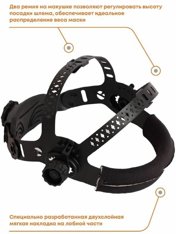Автоматический светофильтр, возможность регулировки DIN, чувствительности и задержки, режим шлифовки, сменная батарея. Питание: батарея Li-Ion + солнечная батарея. Щиток и оголовье из первичного пластика. Двухслойная подкладка для лба: флис+поролон.