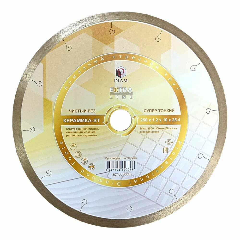 Диск алмазный Diam Extra Line Керамика-ST 250*1.2*7.0*25.4 000660