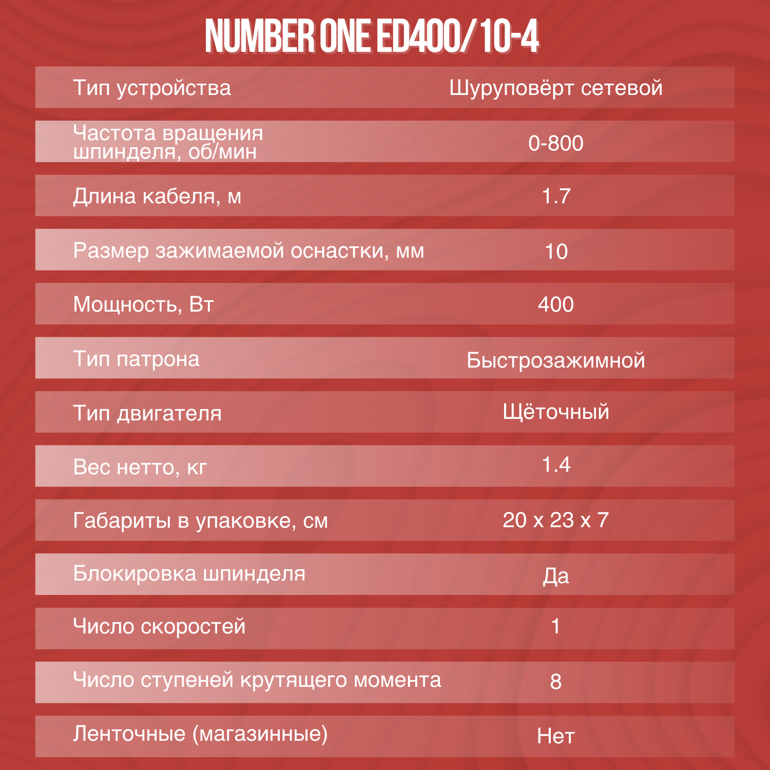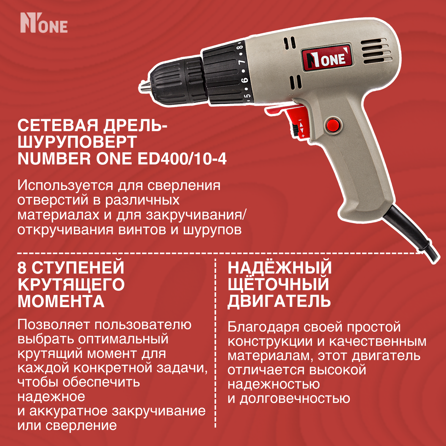 Дрель-шуруповерт №1 ED400/10-4 Number ONE